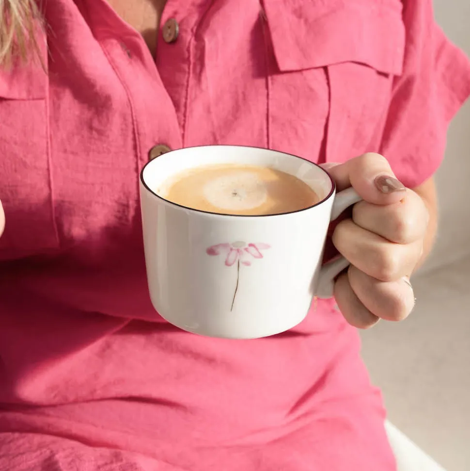 Als seien sie mit dem Pinsel gemalt, so zeigen sich die rosafarbene Blütenblätter auf dieser Tasse von Bastion Collections. Daraus schmecken der morgendliche Kaffee, der nachmittägliche Kakao, der abendliche Tee und alle Lieblingsgetränke zwischendurch einfach toll. Und wenn es nötig wird, kannst Du die Tasse rasch in der Spülmaschine reinigen. Entdecke die Vielfalt von Bastion Collections und lasse Dich inspirieren.
