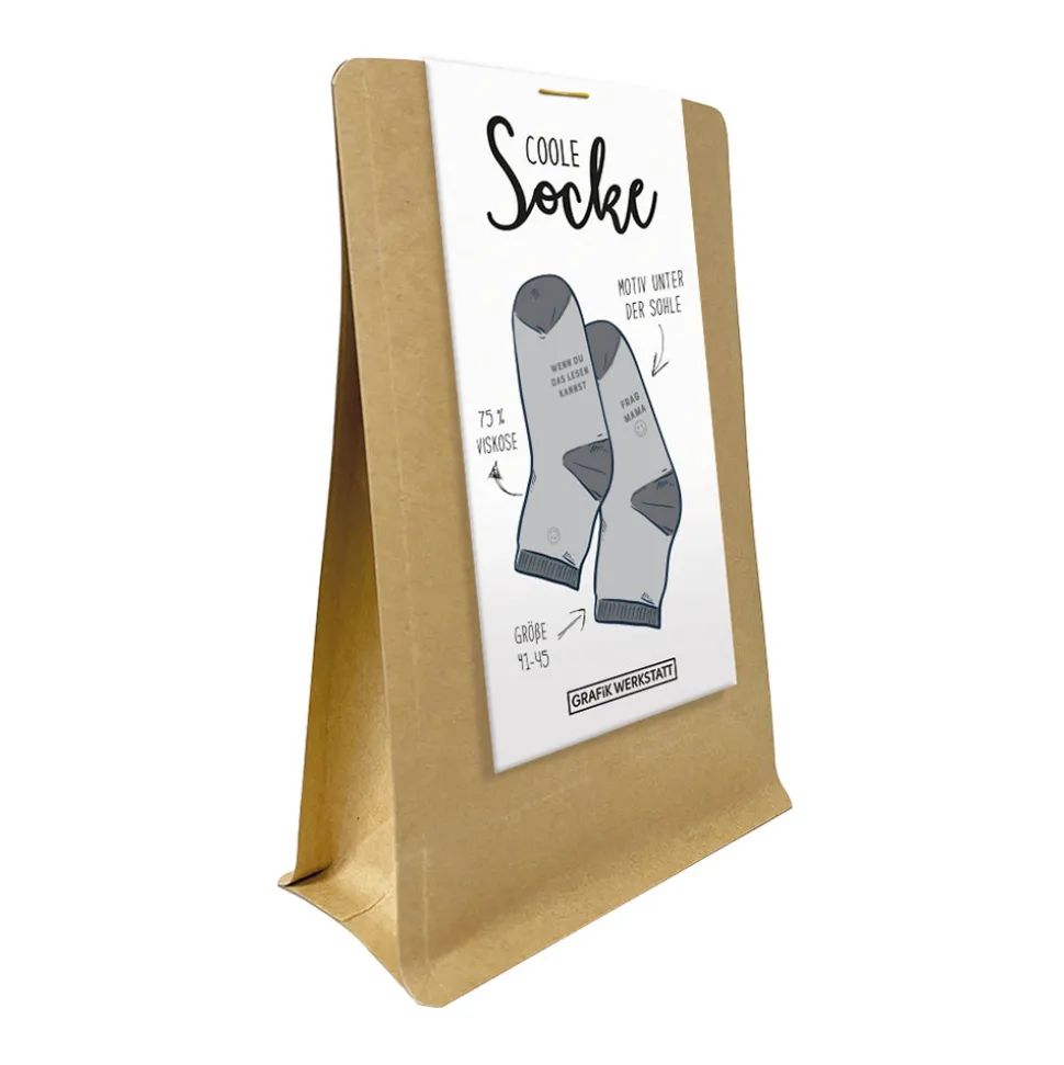 Diese coole Socke ist für jeden Papa genau das Richtige. Hier bekommst Du garantiert einen Moment der Ruhe, denn die Botschaft unter den Socken ist klar. Wenn Du das lesen kannst, frag Mama! Die Smileys auf dem grauen Paar Socken unterstreichen die klare Botschaft, sodass der Papa sich mal zurücklehnen kann. Mama ist ja da! Egal ob für Dich selbst oder Deinen eigenen Vater, diese humorvollen Socken in Größe 41-45 sind einfach ein Muss.