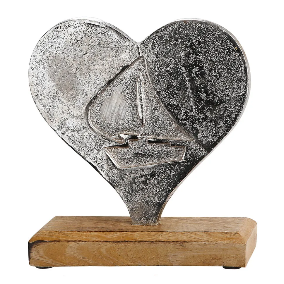 Dieses hübsche Deko-Herz ergänzt wundervoll Deinen maritimen Einrichtungsstil. Das Aluminium-Herz mit eingraviertem Boot thront auf einem Sockel aus Mangoholz. Zusammen mit Windlichtern und Deko-Gras wirkt der Aufsteller mit einer Höhe von 17 cm einfach toll. Entdecke weitere nordische Wohnaccessoires hier in unserem Onlineshop.