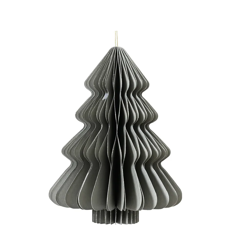 Mit dem entzückenden Tannenbaum aus Papier sorgst Du für einen festlichen Blickfang inmitten Deiner Weihnachtsdekoration. Sein dezentes Graugrün fügt sich nahtlos in jedes Weihnachtsarrangement ein – sei es am Weihnachtsbaum, als Ergänzung zur stilvollen Tischdekoration oder am Fenster. Die filigrane Gestaltung macht den Dekohänger zu einem vielseitigen Element, das auch als Geschenkanhänger oder Blickfang im Wohnbereich dient.