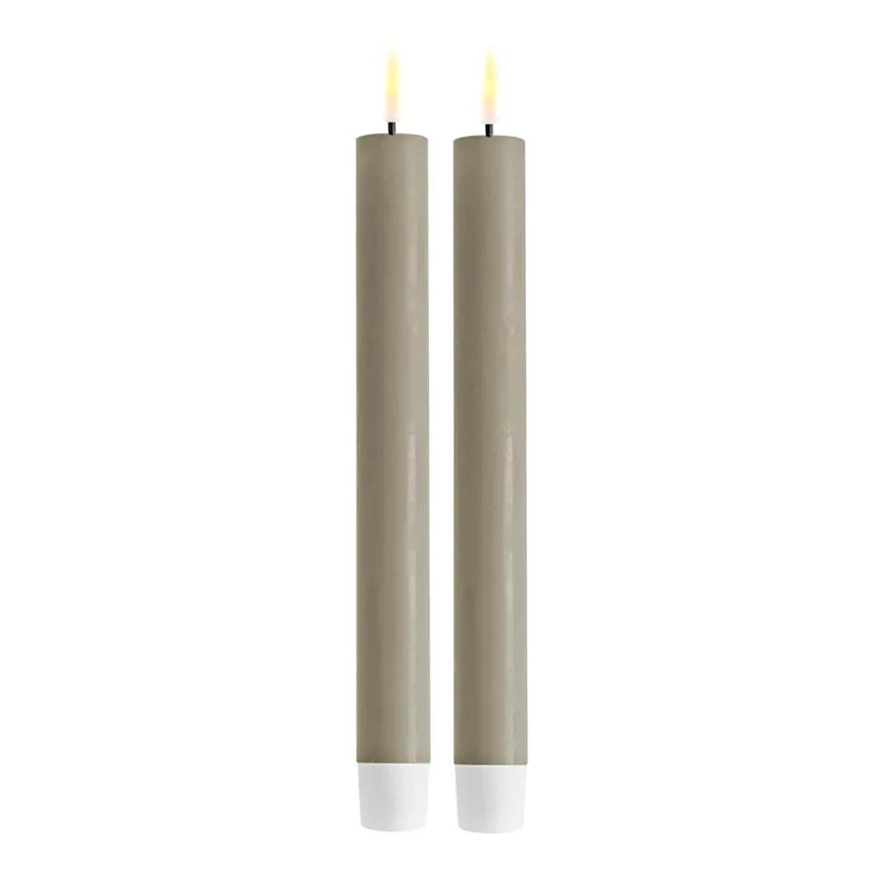 DELUXE LED Stabkerze Sandfarben 24 cm 2er-Set