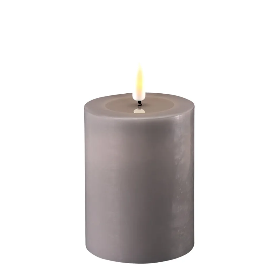 DELUXE LED Stumpenkerze Grau 7,5 x 10 cm