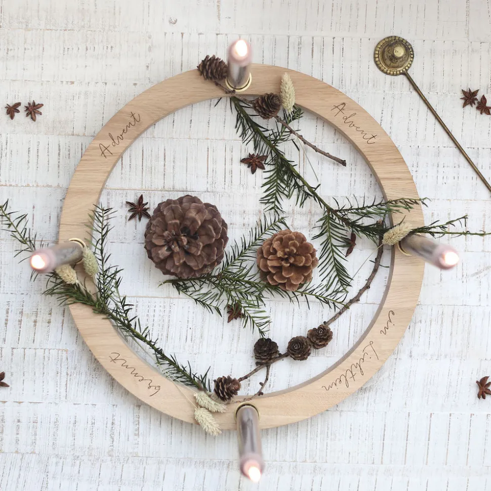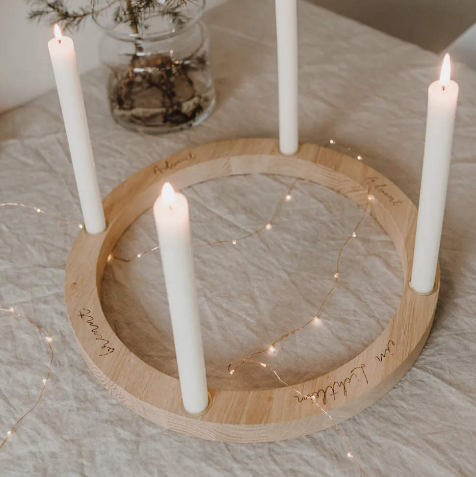 Eulenschnitt Adventskranz aus Eiche