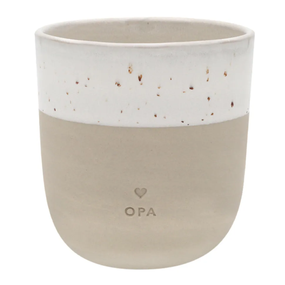 Mit dem Becher Opa von Eulenschnitt ehrst Du einen wichtigen Menschen in Deinem Leben. Bestücke den Becher mit ein paar Pralinen und überreiche ihn einfach mal ganz unerwartet zwischendurch. In einer kleinen Töpferei in Portugal gefertigt ist jeder Becher ein Unikat und etwas ganz Besonderes. Besondere Geschenke für besondere Menschen! Entdecke die tollen Steingut-Produkte von Eulenschnitt und lasse Dich begeistern.