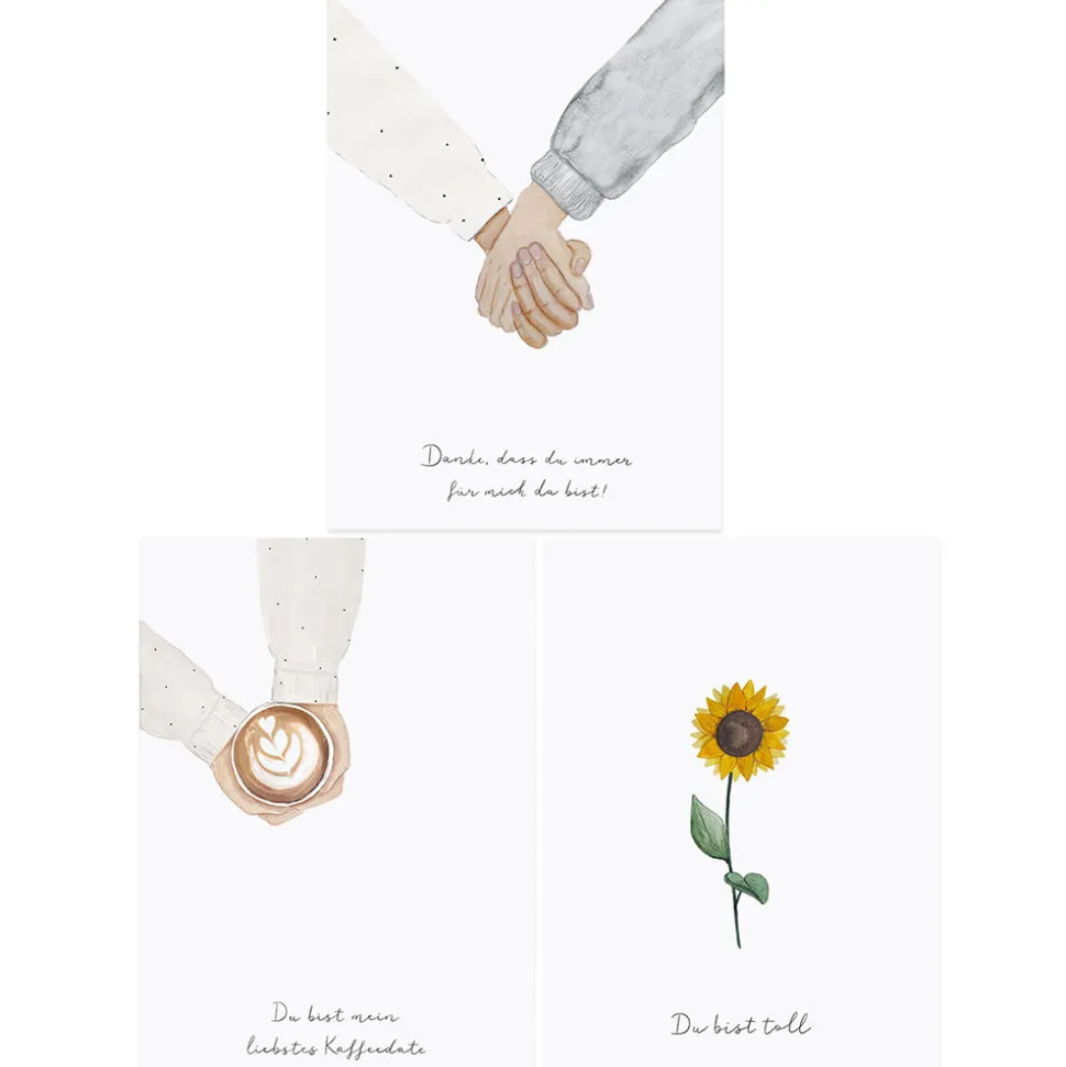 Einfach mal Danke sagen! Das fällt mit diesem tollen 3er-Set Postkarten von Eulenschnitt ganz leicht. Wie schön wenn der Briefkast die Botschaft Du bist toll!, Du bist mein liebstes Kaffeedate! oder Danke, dass Du immer für mich da bist! enthält. Entdecke weitere tolle Spruchkarten von Eulenschnitt hier in unserem Online Shop.