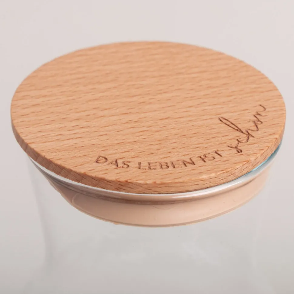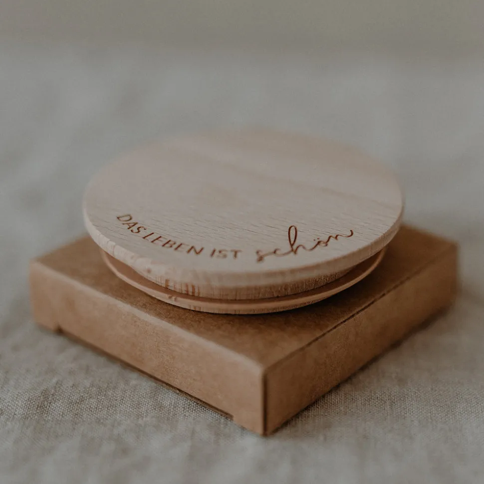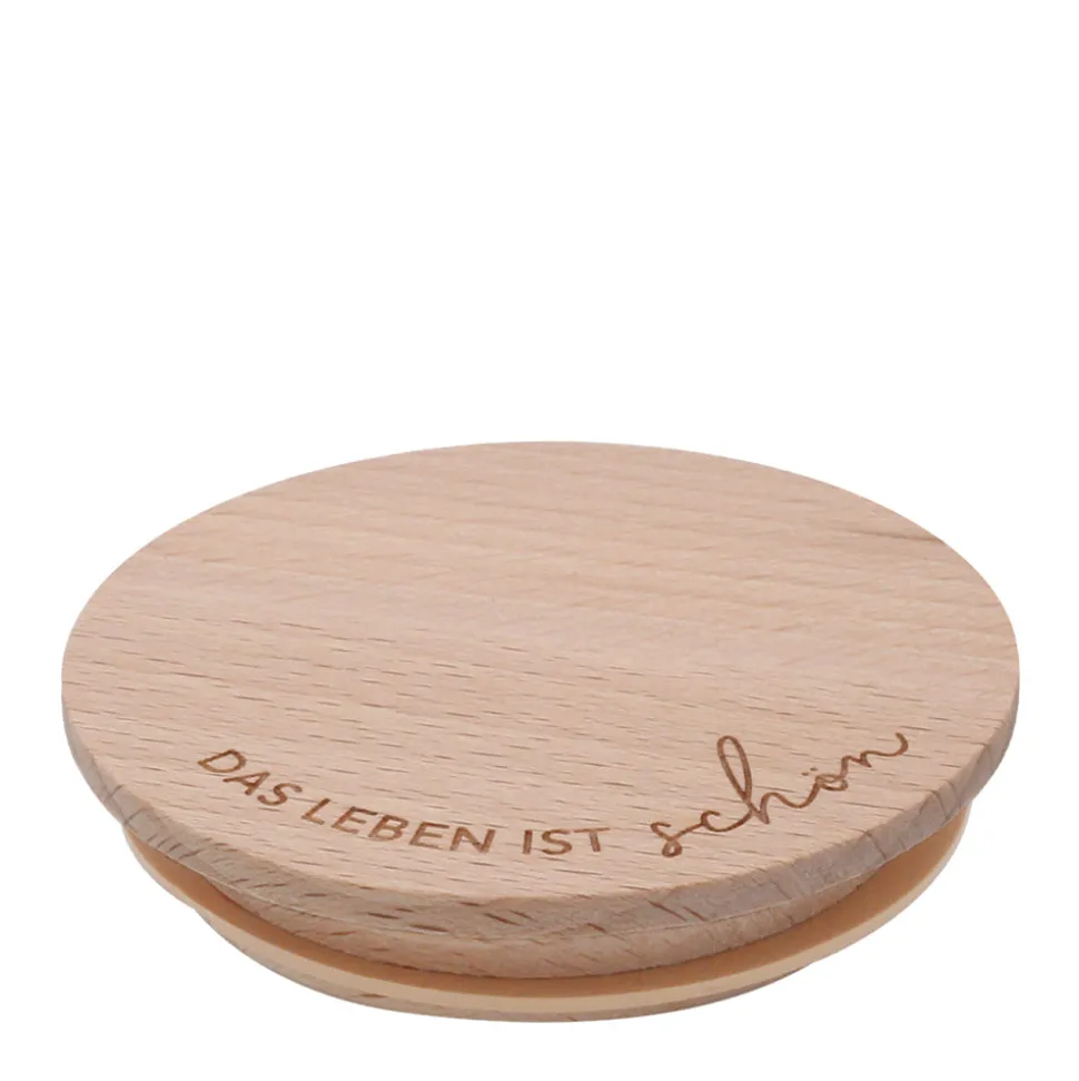 Damit Du lange Freude an dem Produkt hast, reinige das Holz nur mit einem feuchten Tuch. Im Anschluss bitte gründlich trockenreiben und direkte Sonnen- und Hitzeeinstrahlung vermeiden. Nimm den Deckel direkt nach der Benutzung vom Glas, um ihn vor Feuchtigkeit zu schützen.
