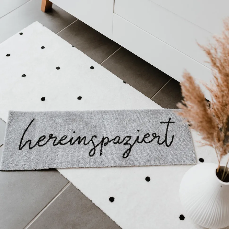 Hereinspaziert ihr Lieben! Die kleine Fußmatte „Hereinspaziert“ von Eulenschnitt begrüßt deine Gäste schon vor der Haustür. Die grauen High Twist Polyamidfasern machen die Türmatte nicht nur robust, sondern fühlen sich dabei auch noch besonders weich an. Die Rückseite besteht aus rutschfestem PVC, so bleibt die Matte garantiert an Ort und Stelle. Was uns besonders gefällt: Der Türvorleger eignet sich sowohl für den Innen- als auch den Außenbereich und hat mit ca. 25 x 75 cm die perfekte Größe. Bei uns im Shop findest du noch weitere einfallsreiche Designs von Eulenschnitt – schau doch mal rein!