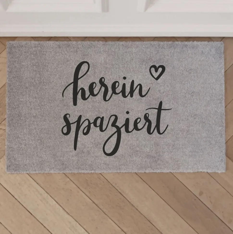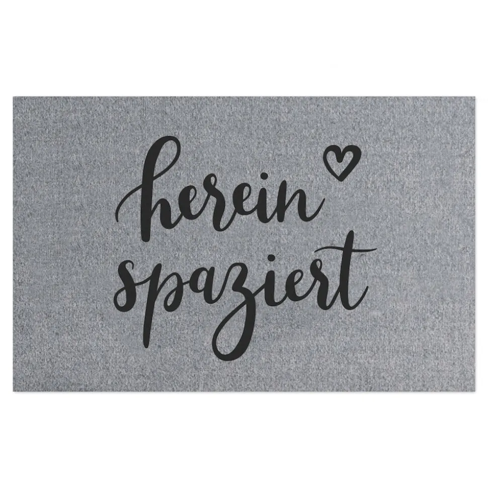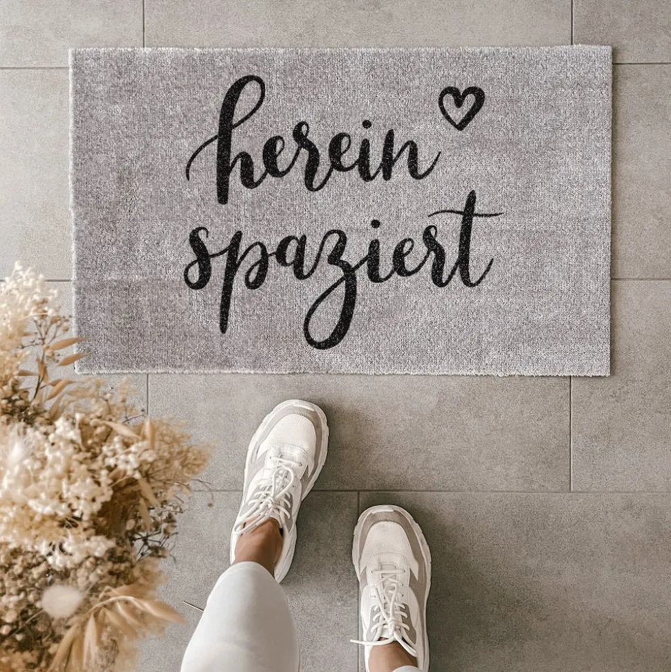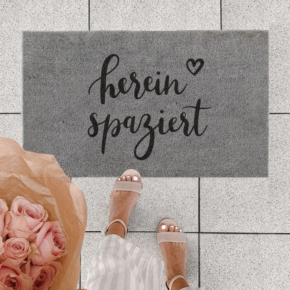 Die graue Fußmatte Hereinspaziert von Eulenschnitt ist das Must-have für Deine heimische Wohnfühloase. Das schwarz-graue Design passt zu jedem Einrichtungsstil und sorgt mit seinem handgeschriebenen Spruch für gute Laune. Die Polyamidfasern machen die Matte dabei nicht nur robust, sondern fühlen sich auch noch besonders weich an Deinen Füßen an: Perfekt zum Barfußgehen! Die Rückseite besteht aus rutschfestem PVC, so bleibt der Vorleger garantiert an Ort und Stelle. Entdecke noch mehr Einfallsreiches von Eulenschnitt hier bei uns!