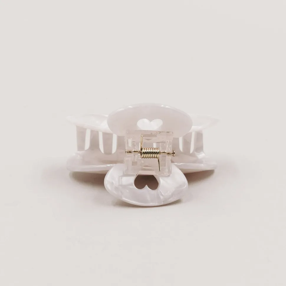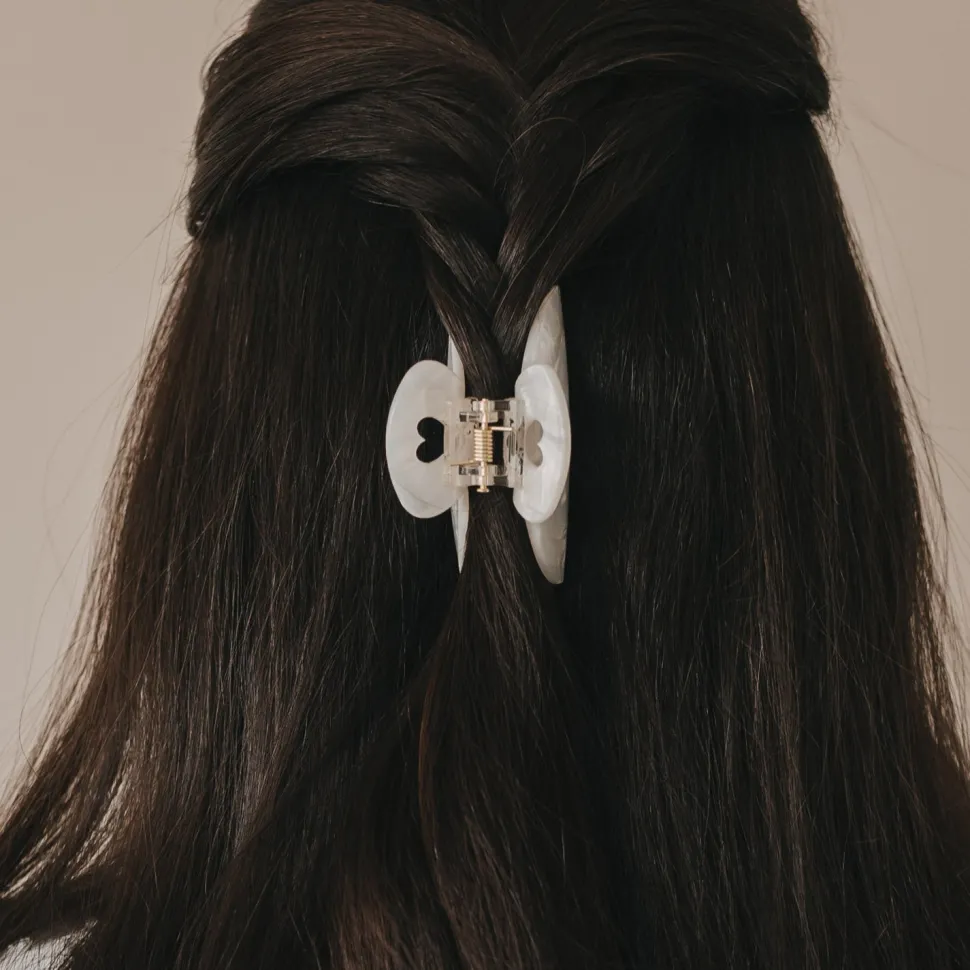 Diese Haarspange von Eulenschnitt verleiht Dir mit den eingearbeiteten Herzchen einen Hauch von Romantik. Der weiße Perlmuttschimmer wird toll in Deinem Haar wirken. Mit einer Länge von 7 cm und einer Breite von 4 cm ist diese Haarspange ein echter Hingucker.