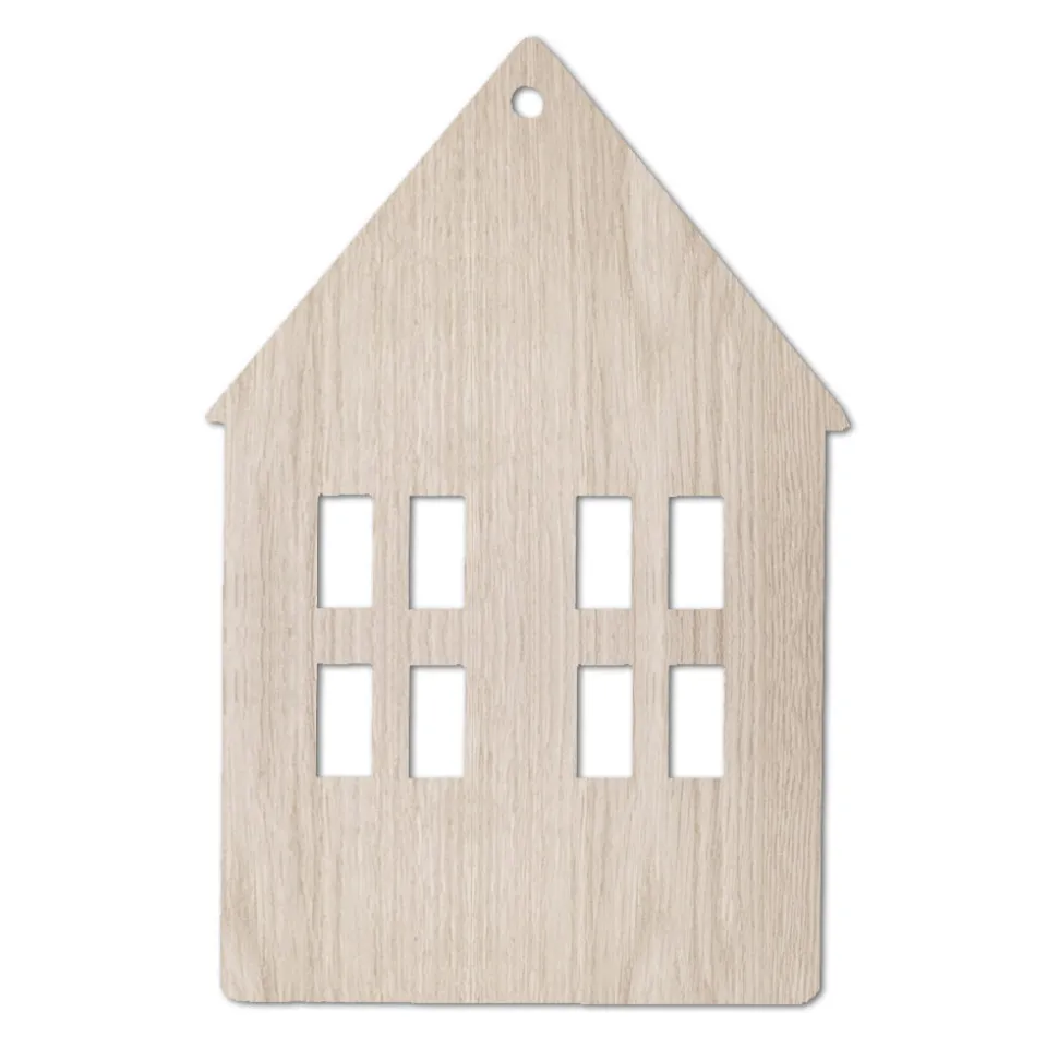 Eulenschnitt Holzanhänger Haus 8er-Set naturfarben