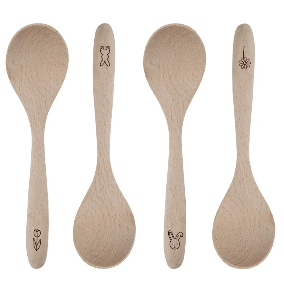 Mit diesen wundervollen Löffeln von Eulenschnitt aus Buchenholz servierst Du Deine Gerichte perfekt am festlich gedeckten Tisch. Die Ostergravur auf jedem Löffel ist ein echter Hingucker. Du erhältst gleich vier Löffel mit einer Größe von ca. 16,5 x 4 cm in diesem Set. Entdecke weitere tolle Küchenideen aus Holz hier in unserem Online-Shop.
