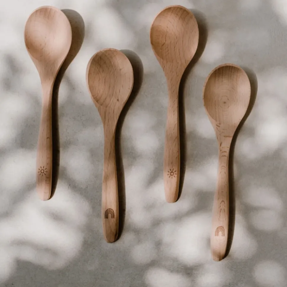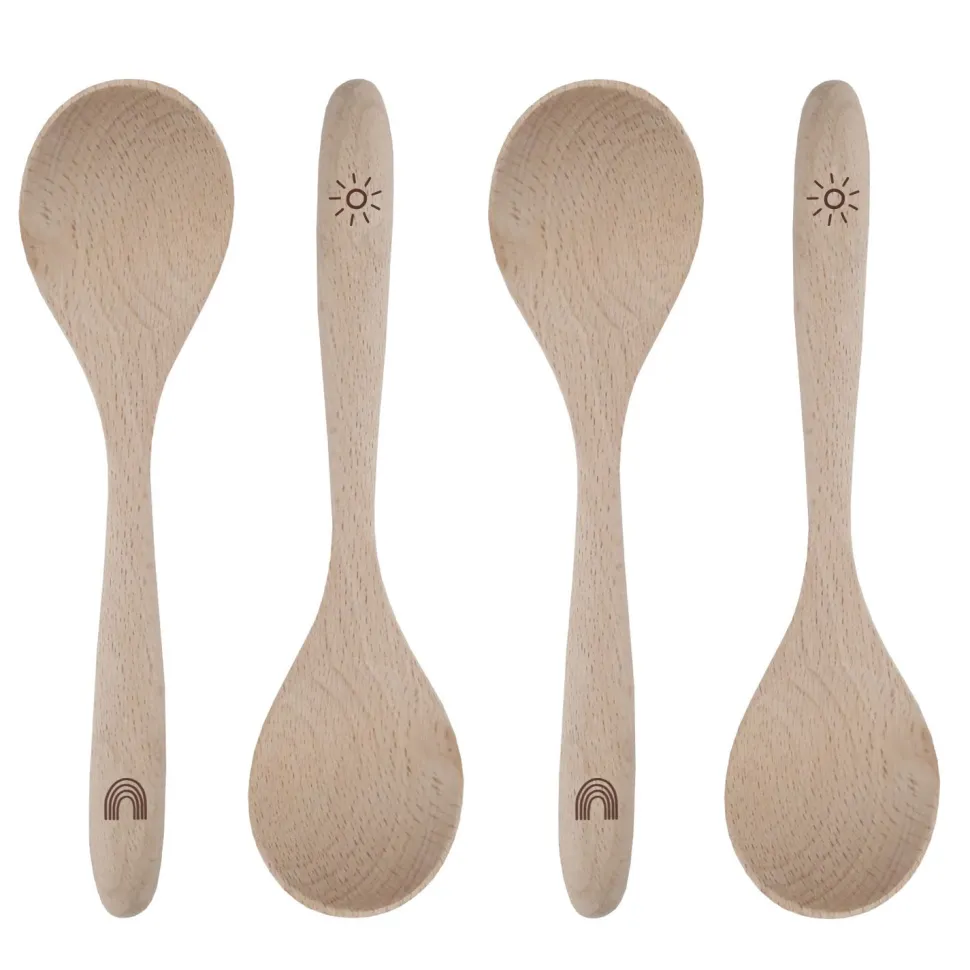 Mit diesen wundervollen Löffeln von Eulenschnitt aus Buchenholz servierst Du Deine Gerichte perfekt am Tisch. Die Regenbogen- und Sonnengravur auf den Löffeln ist ein echter Hingucker. Entdecke weitere tolle Geschenkideen aus Holz hier in unserem Online-Shop.