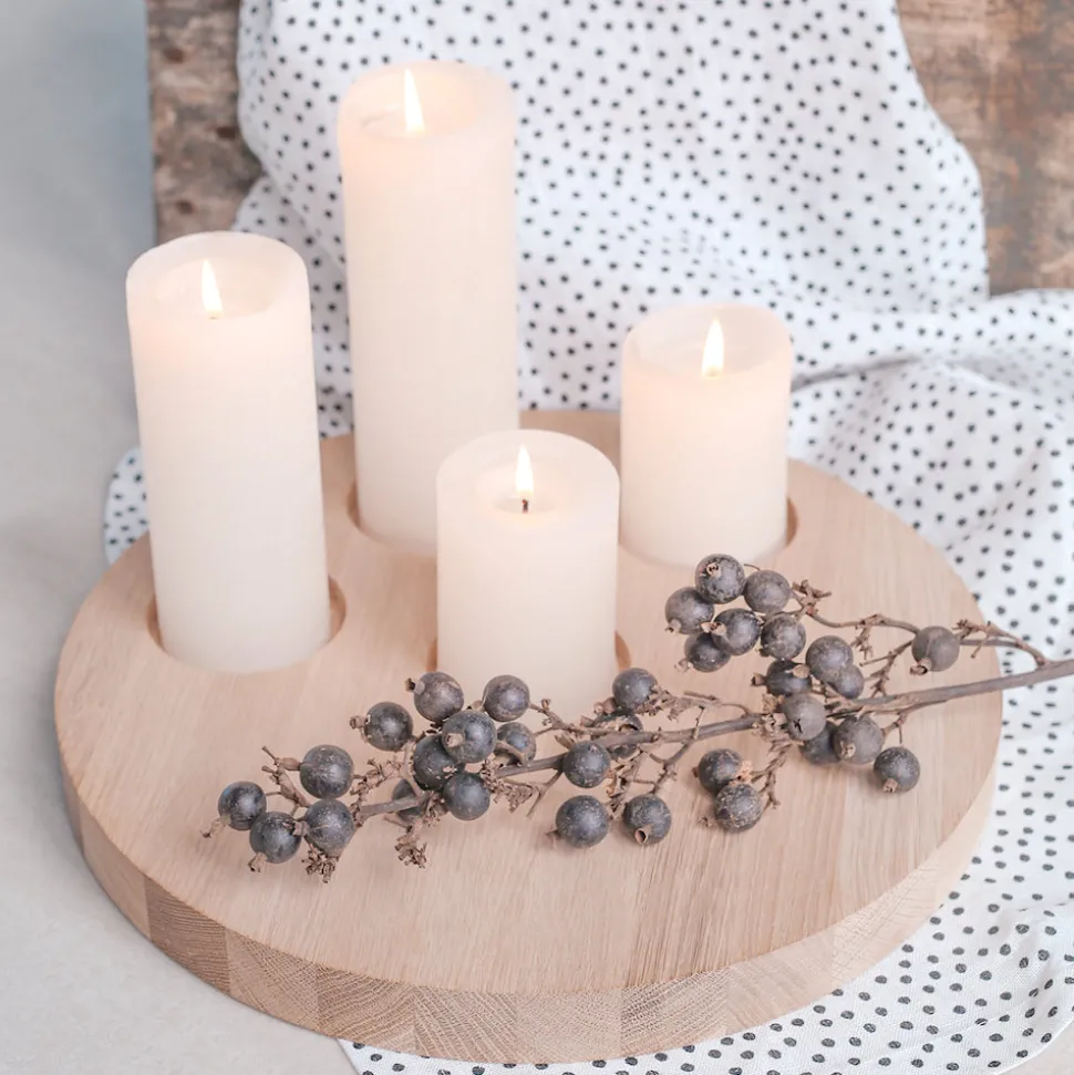 Mit diesem Kerzenbrett von Eulenschnitt holtst Du Dir eine tolle Alternative für einen wunderschönen Adventskranz aus Holz in Dein Zuhause.
