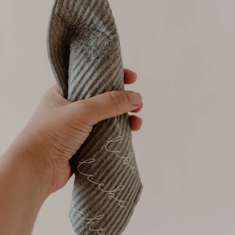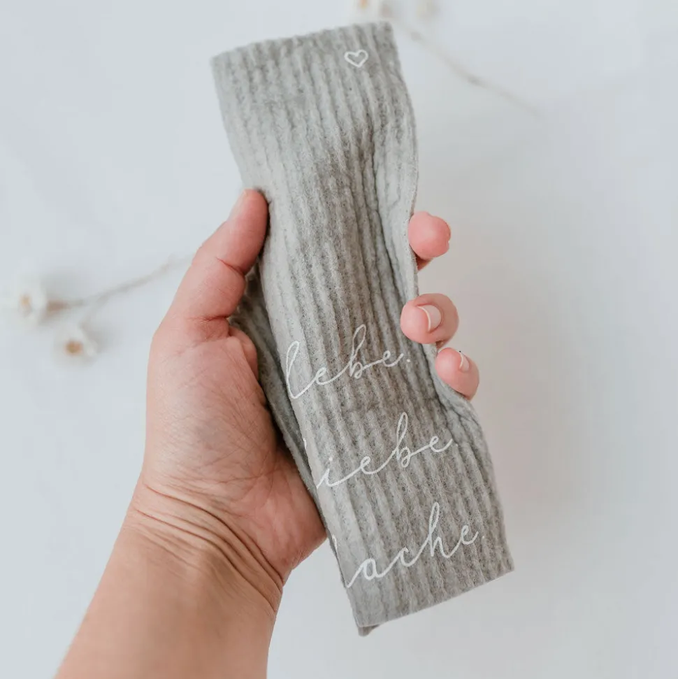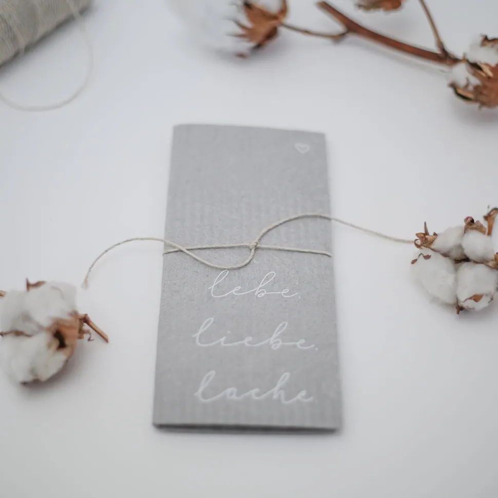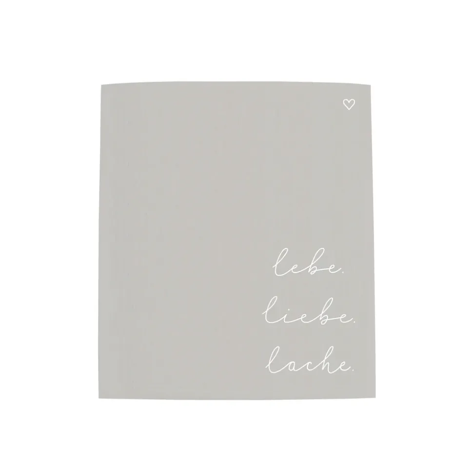 Du hast genug von Eintönigkeit in Deiner Küche? Dann bringen dir die Schwammtücher `lebe. Liebe. Lache.´ von Eulenschnitt die ersehnte Abwechslung und das sogar im 3er-Set! Die Tücher in angesagtem Hellgrau sind mit einem handgeschriebenen Schriftzug in Weiß bedruckt. Dass nicht nur das Design zählt ist selbstverständlich, also was macht die Schwammtücher zu perfekten Küchenhelfern? Sie lassen sich bei 95°C waschen, sind besonders saugfähig, fusselfrei und dabei auch noch nachhaltig, dank kompostierbarem Mix aus 70% Cellulose und 30% Baumwolle – was will man mehr? Bei uns im Shop gibt es auch noch weitere Schwammtücher zu entdecken.
