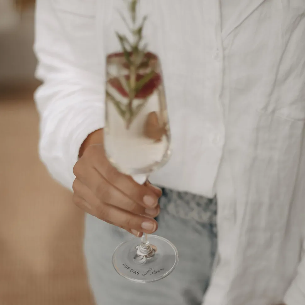 Stoße mit diesem Sektglas von Eulenschnitt auf das Leben an! Ob mit der besten Freundin oder dem guten Arbeitskollegen – Anlässe gibt es viele, das Leben zu feiern. Das tulpenförmige Sektglas ist aus hochwertigem Glas gefertigt und überrascht uns am Glasfuß mit dem trendigen Spruch: Auf das Leben!