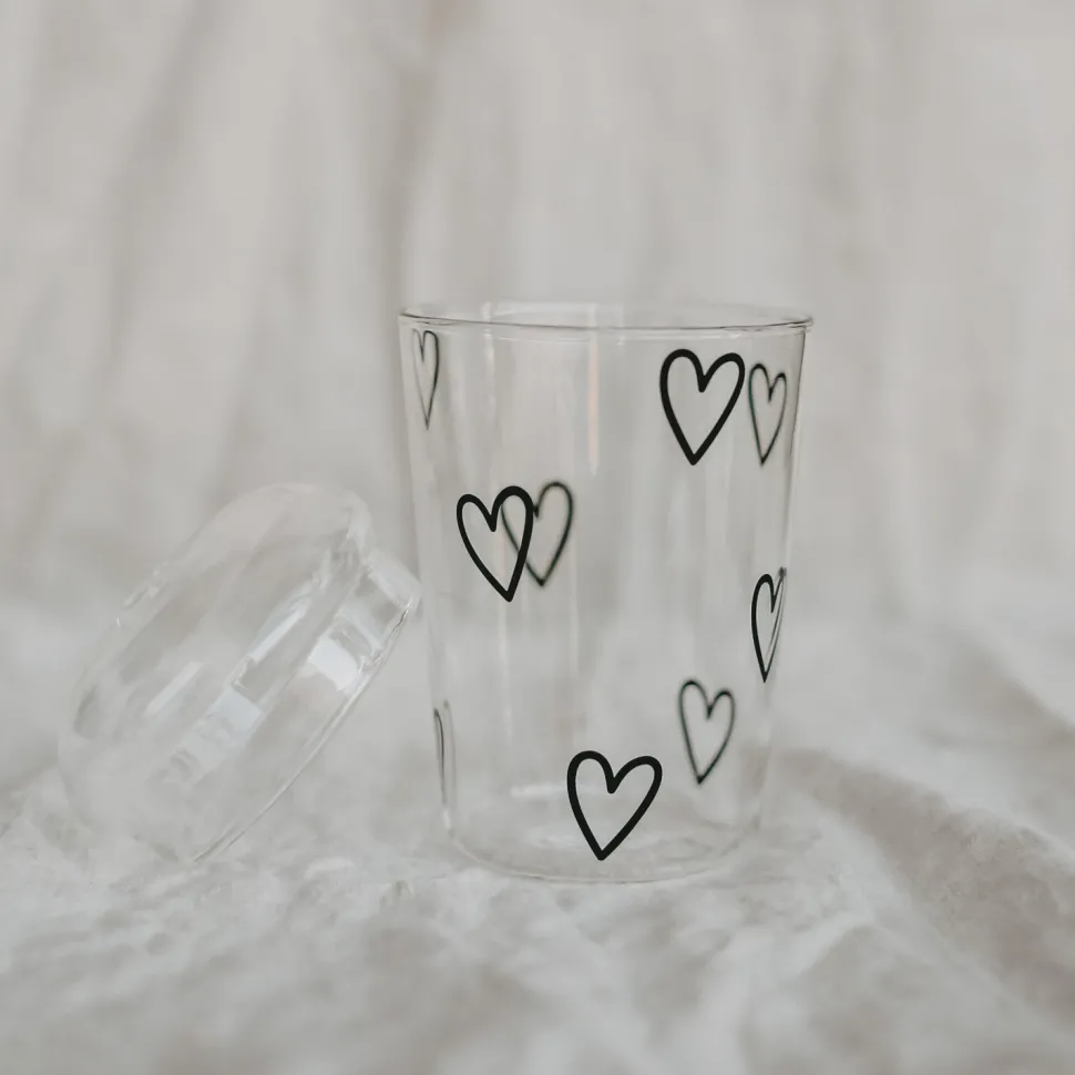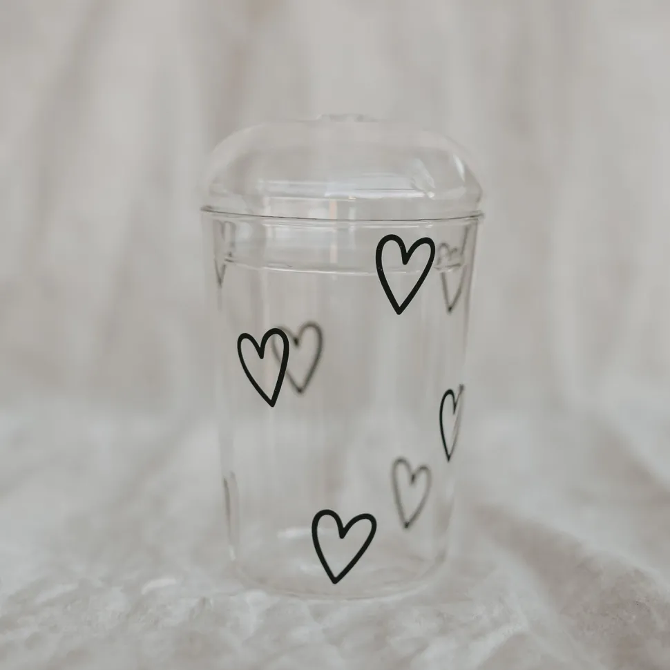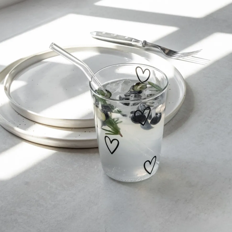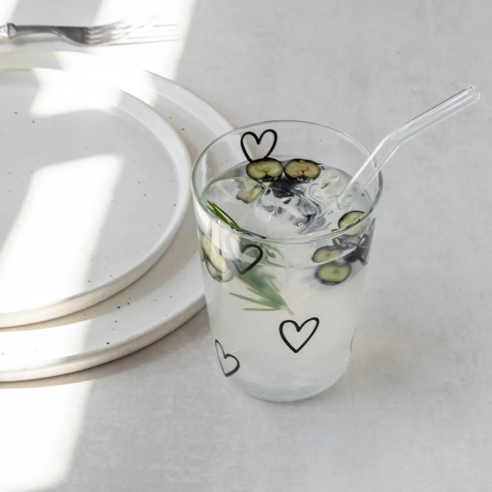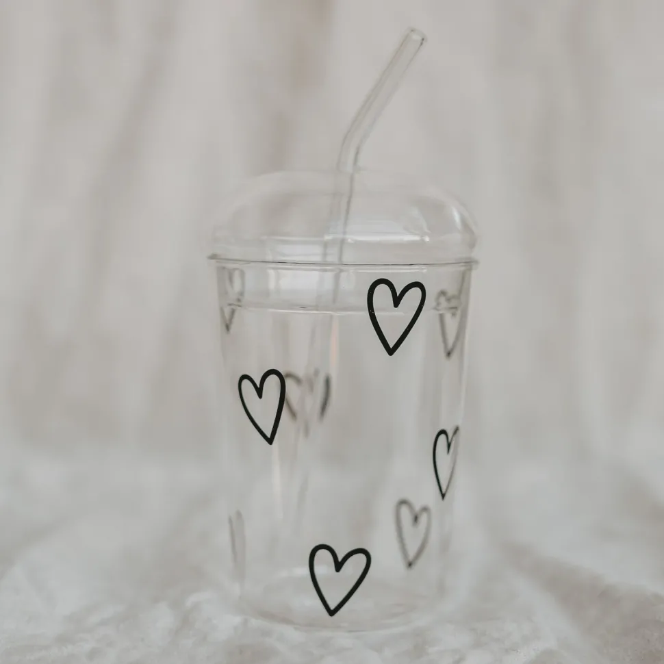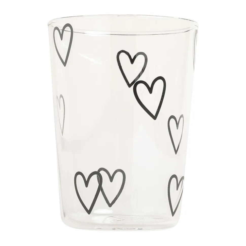 Das Eulenschnitt Trinkglas mit einem stilvollen Design aus schwarzen Herzen auf der Vorderseite ist ein must-have für den täglichen Gebrauch und besondere Anlässe. it einer Größe von ca. 6 x 11 cm und einem Fassungsvermögen von etwa 450 ml ist es perfekt für eine Vielzahl von Getränken geeignet, sei es Cocktails, Softdrinks oder erfrischendes Wasser. Lasse Dich inspirieren und entdecke die trendigen Produkte von Eulenschnitt hier in unserem Shop.