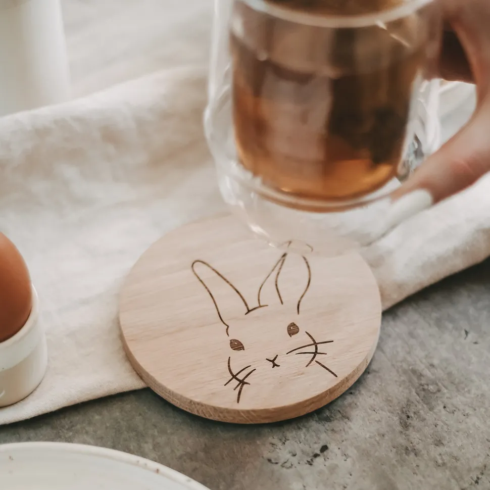 Auf diesem niedlichen Häschen möchte man fast kein Glas abstellen! Wagt man es dennoch, schützt der 11 cm große Untersetzer aus Eiche Deine Möbel vor hässlichen Getränkekringeln und bereichert Deine österliche Tischdekoration. Entdecke die natürlichen Produkte von Eulenschnitt und lasse Dich inspirieren.