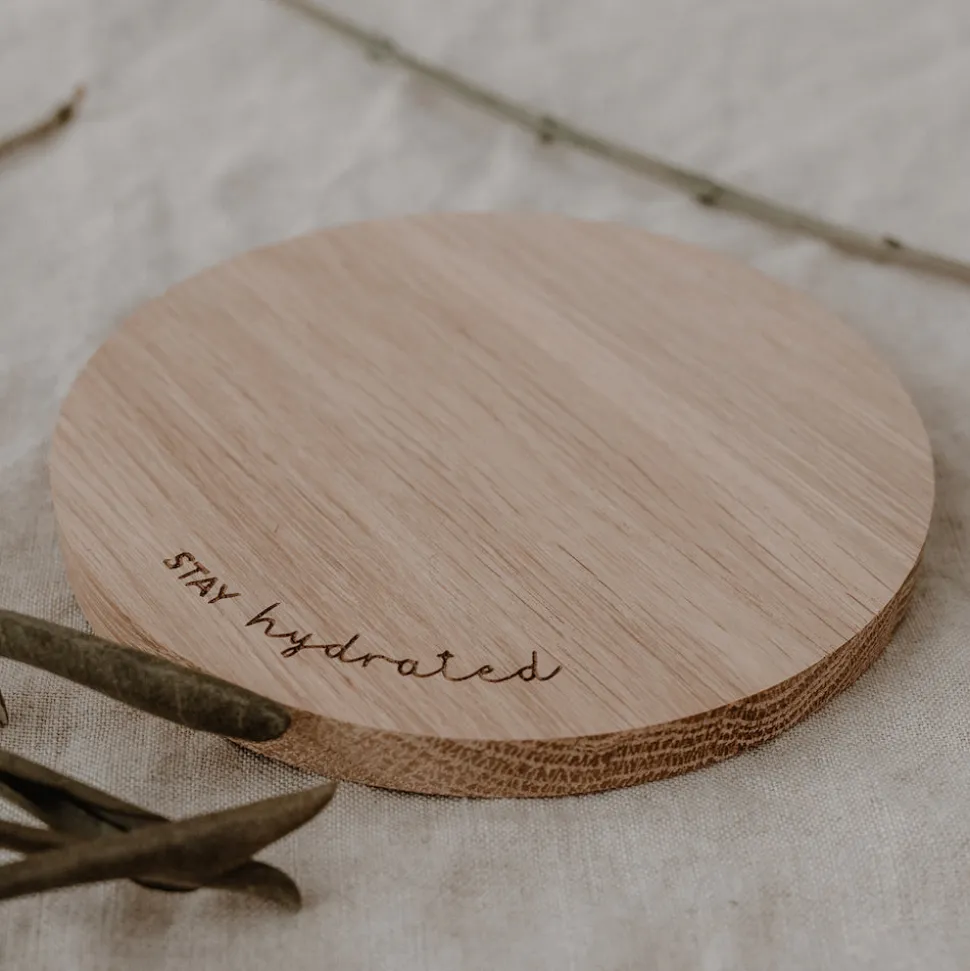 Eulenschnitt Untersetzer aus Eiche Stay hydrated