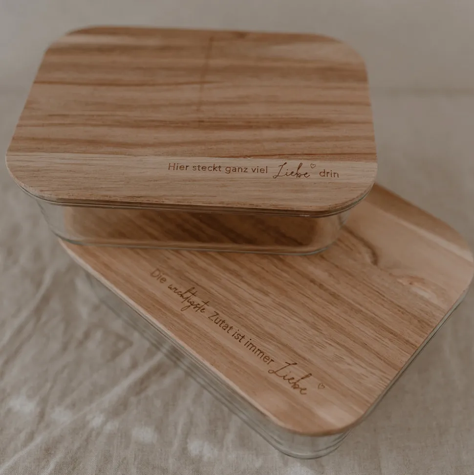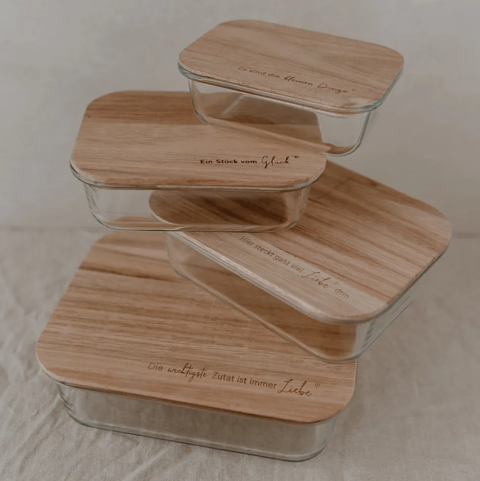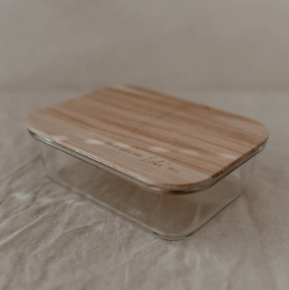 Das Glas ist spülmaschinengeeignet, der Holzdeckel darf nur mit einem feuchten Tuch abgewischt und direkt getrocknet werden!