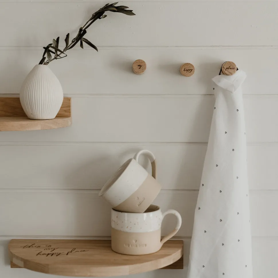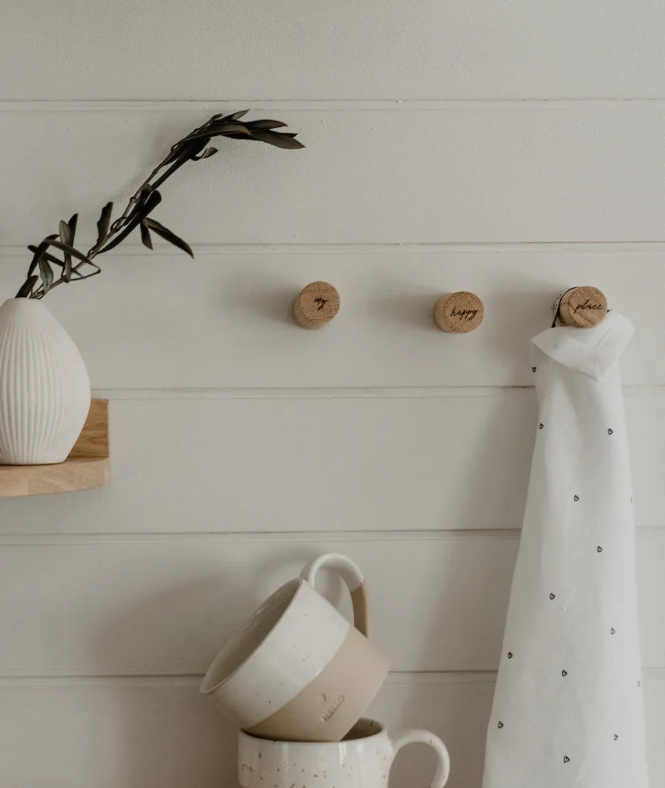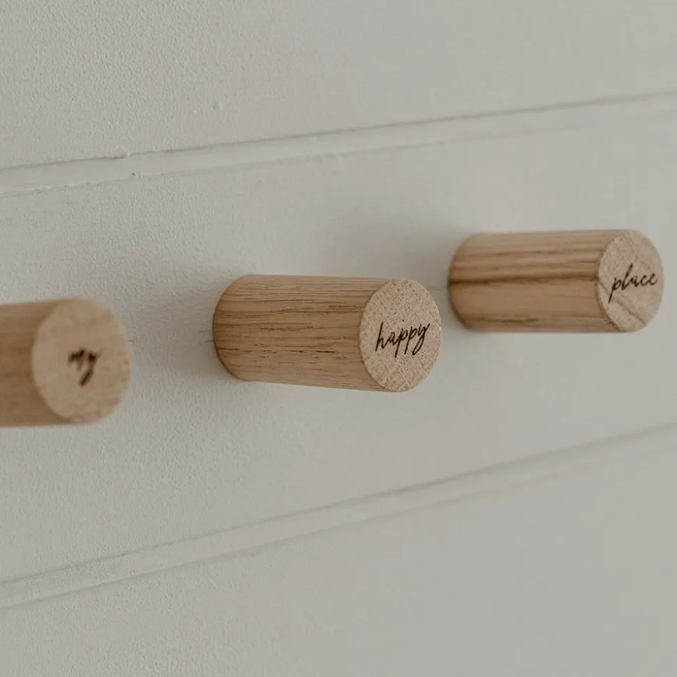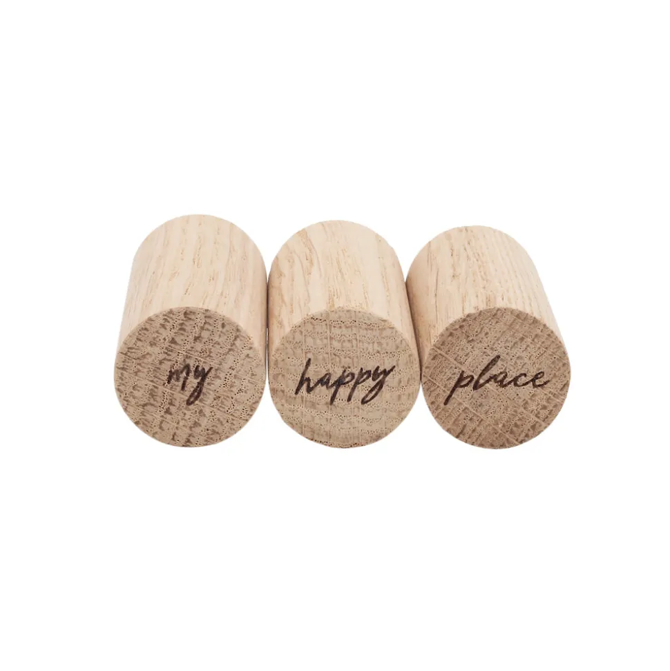 Diese Wandhaken von Eulenschnitt sind nicht nur praktisch, sondern auch absolut im Trend. My Happy Place – dieses Motto soll Dich in Deinem gemütlichen Heim begleiten. Die Wandhaken sind aus Eichenholz gefertigt und haben einen Durchmesser von 2,5 cm und eine Länge von 5 cm.