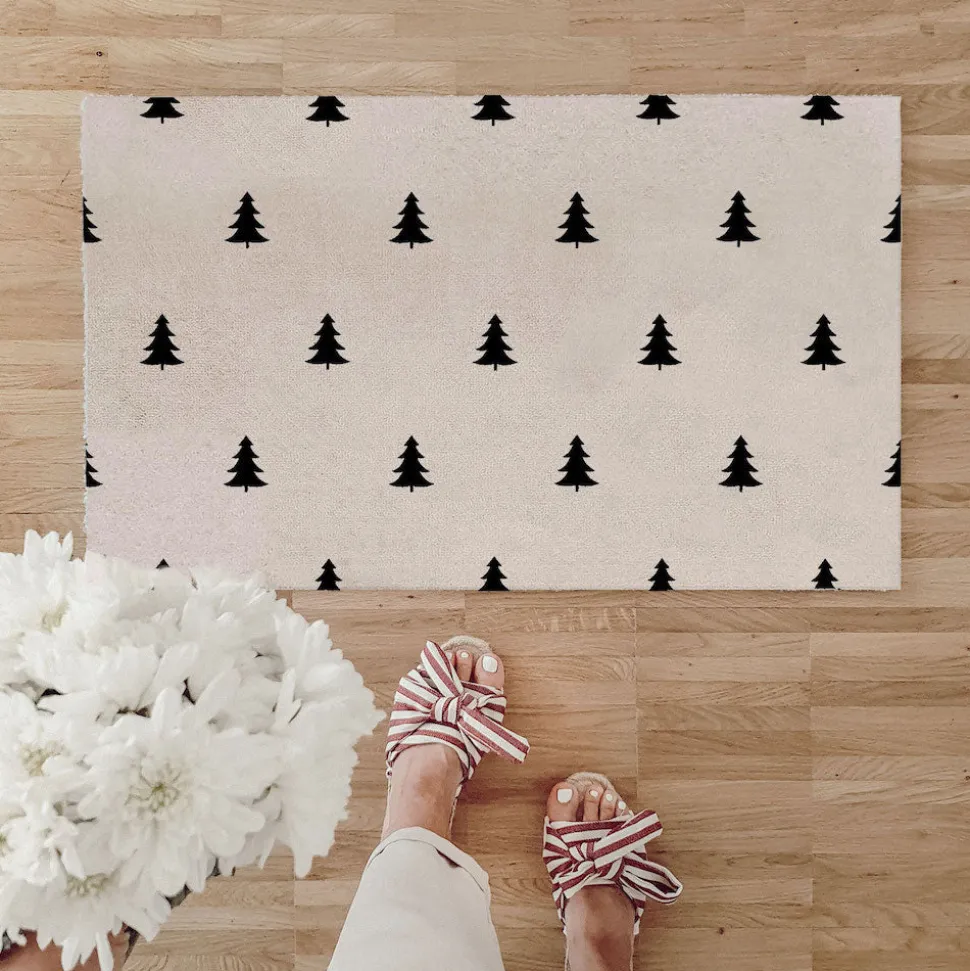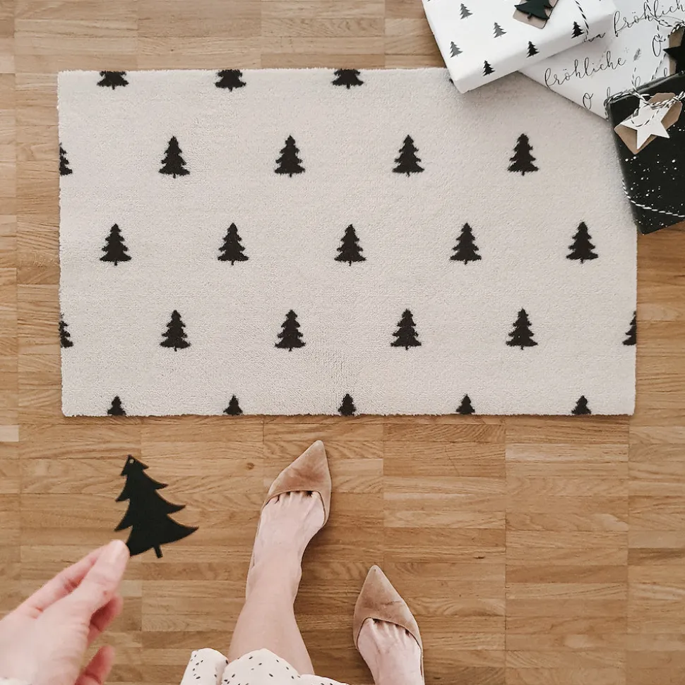 Eulenschnitt waschbare Fußmatte Tannen cremefarben