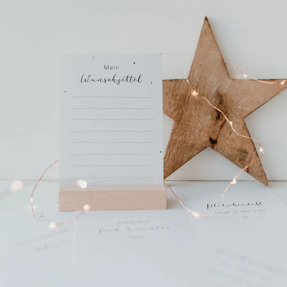 Die Vorweihnachtszeit ist die Zeit des Jahres, in der wir allen unseren Lieben noch einmal besonders gerne sagen, wie gerne wir sie haben. Und wie lässt es sich besser ausdrücken, als mit einer trendigen Weihnachtskarte von Eulenschnitt? Diese Karte wurde handgezeichnet und anschließend digitalisiert. Auf hochwertiges, weißes 400g Premium Papier wurde der Spruch Mein Wunschzettel gedruckt. So kannst Du die Karte nicht nur auf der Rückseite beschreiben, sondern Deine Wünsche auch gleich vorn eintragen. Sehr praktisch! Minimalistisches Schwarz-weiß-Design im DIN A6 Format. Sende doch in diesem Jahr mal wieder einen Gruß per Post und lasse Vorfreude in den Postkasten flattern. Entdecke noch mehr trendige und weihnachtliche Produkte von Eulenschnitt in unserem Shop.