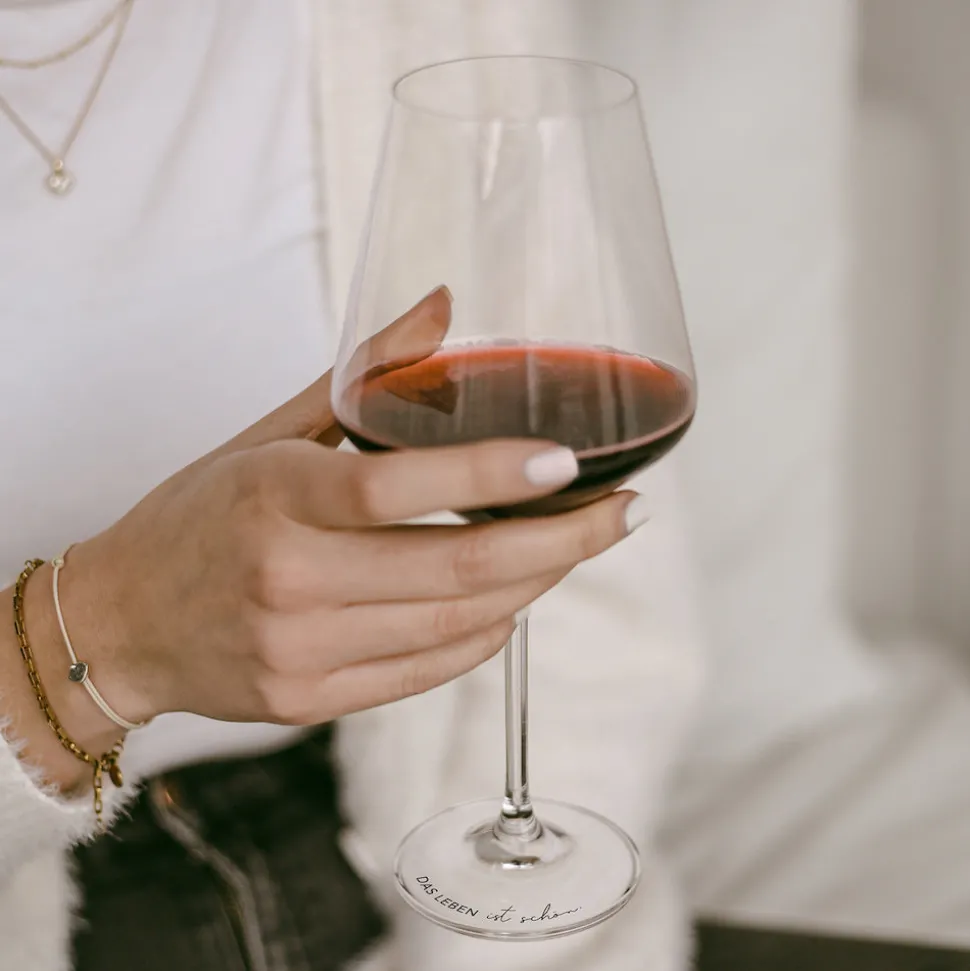 Einfach mal die Füße hochlegen und einen schönen Schluck Wein genießen, denn das Leben ist schön! Eulenschnitt hat diesen schönen Spruch auf Deinem neuen Weinglas verewigt und möchte Dich somit immer daran erinnern, dass jeder Tag einfach zu schön ist, um Trübsal zu blasen. Ganz gleich welchen Wein Du bevorzugst, das Fassungsvermögen von 490 ml bei einer Größe von 24 x 10 cm setzt Dir bei dem Eulenschnitt Weinglas kaum Grenzen.