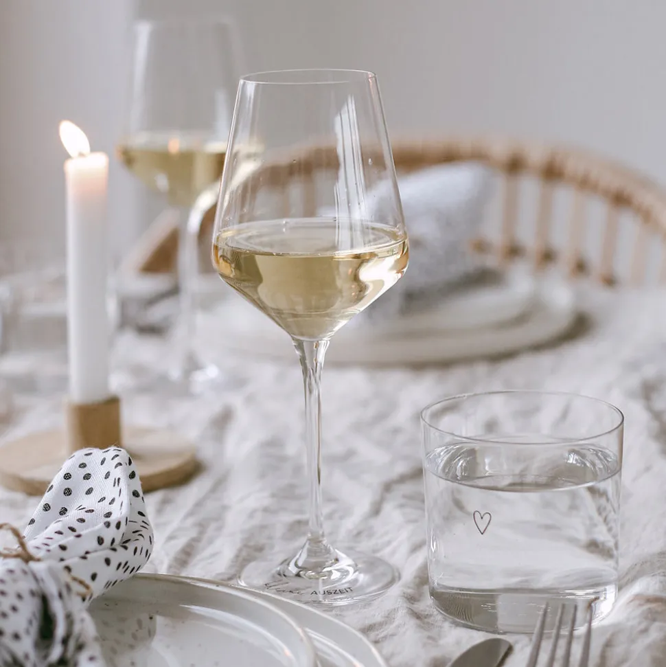 Mache eine kleine Auszeit und genieße Deinen Lieblingswein ab sofort aus diesem stilvollen Glas von Eulenschnitt. Das dünnwandige Glas ist dennoch stabil und hat ein Fassungsvermögen von 390 ml. Kombiniere die unterschiedlichen Weingläser von Eulenschnitt doch miteinander und habe einen unvergesslichen Abend.