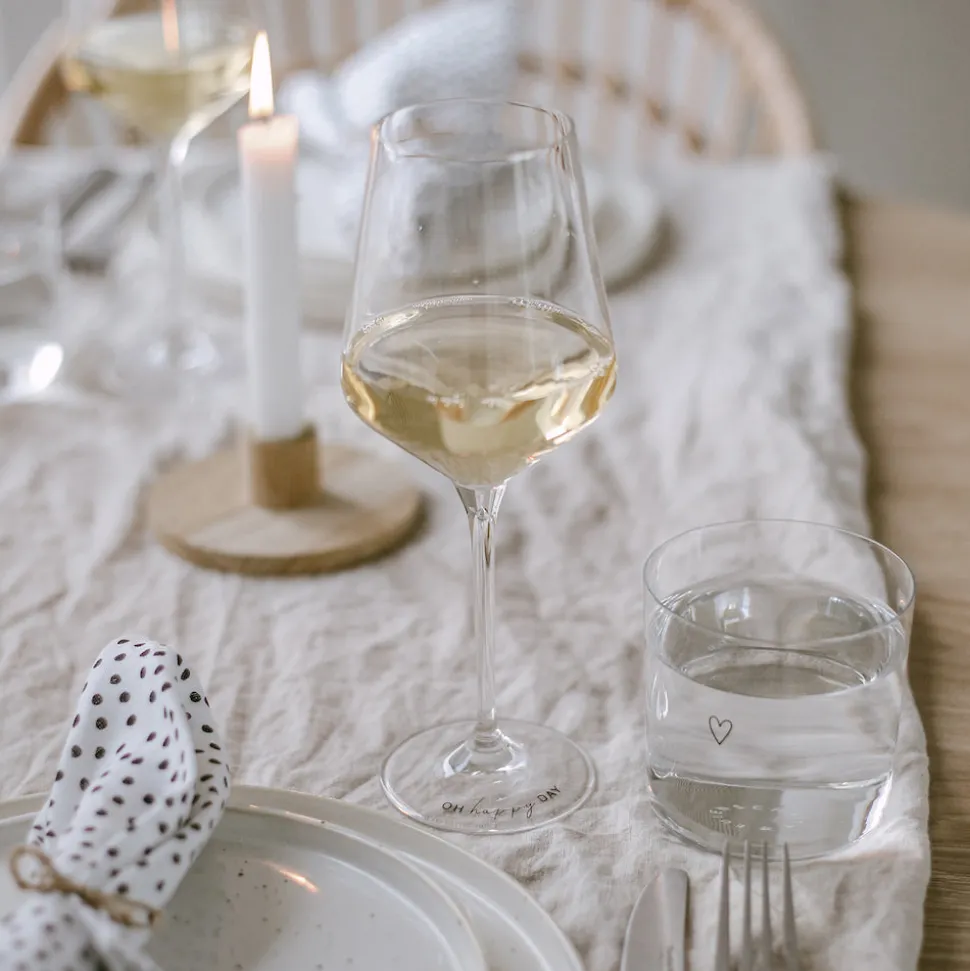 Genieße den Tag und Deinen Lieblingswein ab sofort aus dem stilvollen Glas Oh happy day von Eulenschnitt. Das dünnwandige Glas ist dennoch stabil und hat ein Fassungsvermögen von 390 ml. Kombiniere die unterschiedlichen Weingläser von Eulenschnitt doch miteinander und habe einen unvergesslichen Abend.