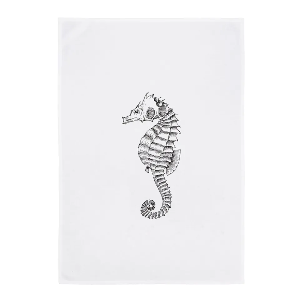 Das dunkelgraue Seepferdchen auf dem weißen Geschirrtuch wird zum neuen Hingucker in Deiner Küche. Die vielen Details sorgen dafür, dass das Seepferdchen einen tollen Blickfang bietet, wenn Du den Küchenhelfer aus 100% Baumwolle nicht gerade zum Abspülen nutzt. Das ist genau das Richtige für alle Maritim-Fans.
