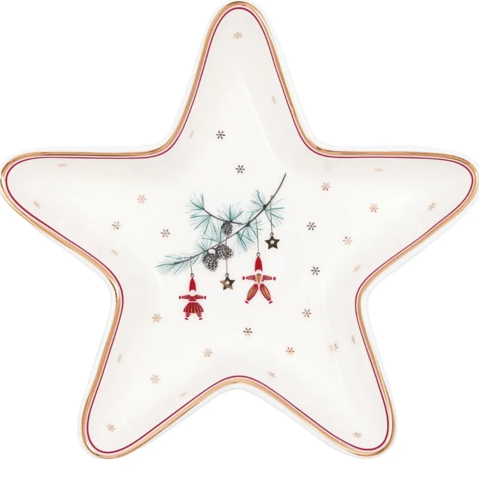 Der sternenförmige Teller Juana von Greengate ist ein ganz besonderes Schmuckstück für Deine Weihnachtstafel und bringt festlichen Glanz mit einem einzigartigen Design auf den Tisch. Das strahlend weiße Porzellan bildet die perfekte Basis für einen liebevoll gestalteten Zweig, der zentral auf dem Teller platziert ist. Dieser Zweig ist nicht nur ein dekoratives Element, sondern zugleich eine Hommage an die Natur und die besinnliche Weihnachtszeit.