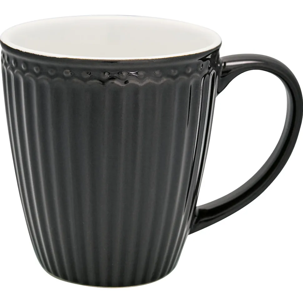 Wenn die Tage kürzer werden, ist ein heiße Tasse Tee nach dem Spaziergang genau das Richtige. Das geht besonders gut mit der Tasse Alice von Greengate aus feiner Keramik. Die Henkeltasse ist mit ihrer feinen Struktur ein echter Handschmeichler und durch das elegante Dunkelgrau ein richtiger Hingucker. Mit dieser Tasse steht einer entspannten Kaffeerunde mit Plätzchen, Keksen und Kuchen nichts mehr im Wege. Wenn dir diese Tasse schon gut gefällt, solltest du dir einmal die anderen Farben der Alice Kollektion von Greengate ansehen, dort findest du sicher noch ein paar weitere Lieblingsteile.
