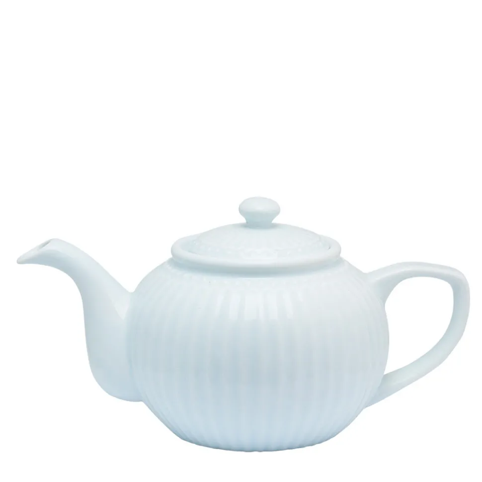 Diese tolle Teekanne in Hellblau aus der Serie Alice von Greengate besticht durch Schlichtheit und Eleganz. So wird Deine Tafel zum echten Hingucker und Dein Tee von nun an gleich doppelt so gut schmecken. Lass auch Du Dich von den zauberhaften Greengate-Produkten begeistern.