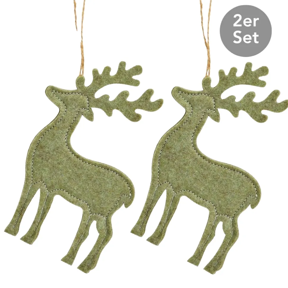Dieses stilvolle 2er-Set Hirsch-Anhänger in edlem Dunkelgrün bringt einen Hauch von Waldromantik und winterlicher Eleganz in deine Weihnachtsdekoration. Die schlichte Formgebung der Hirsche verbindet klassische Motive mit modernem Design und macht sie zu zeitlosen Begleitern in der Adventszeit und darüber hinaus.