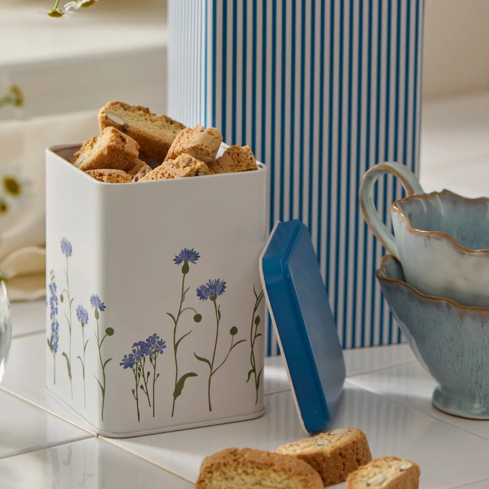 Die rechteckige Dose von Ib Laursen begeistert mit einem zarten Kornblumen-Muster und ist praktisch, als auch dekorativ. Ideal zur Aufbewahrung von Keksen, Tee oder anderen Kleinigkeiten, fügt sich die Dose perfekt in jede Küche oder auf den Esstisch ein. Lasse Dich inspirieren und entdecke die Produkte von Ib Laursen hier in unserem Shop.