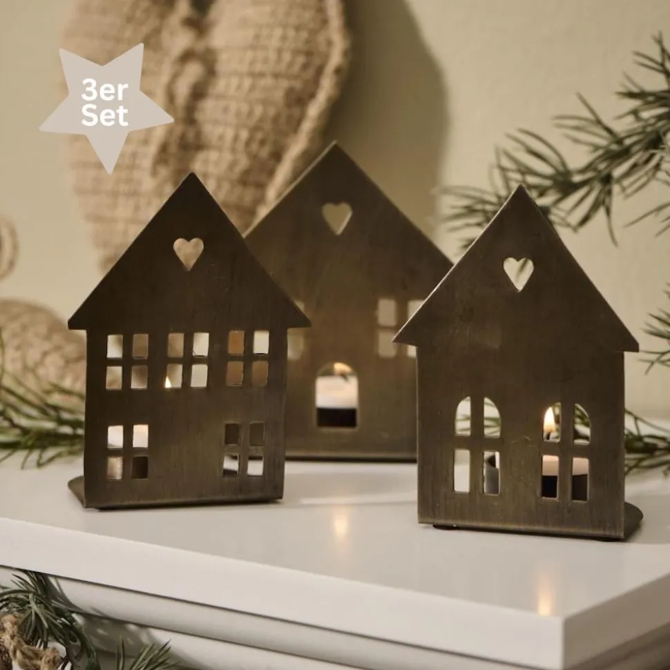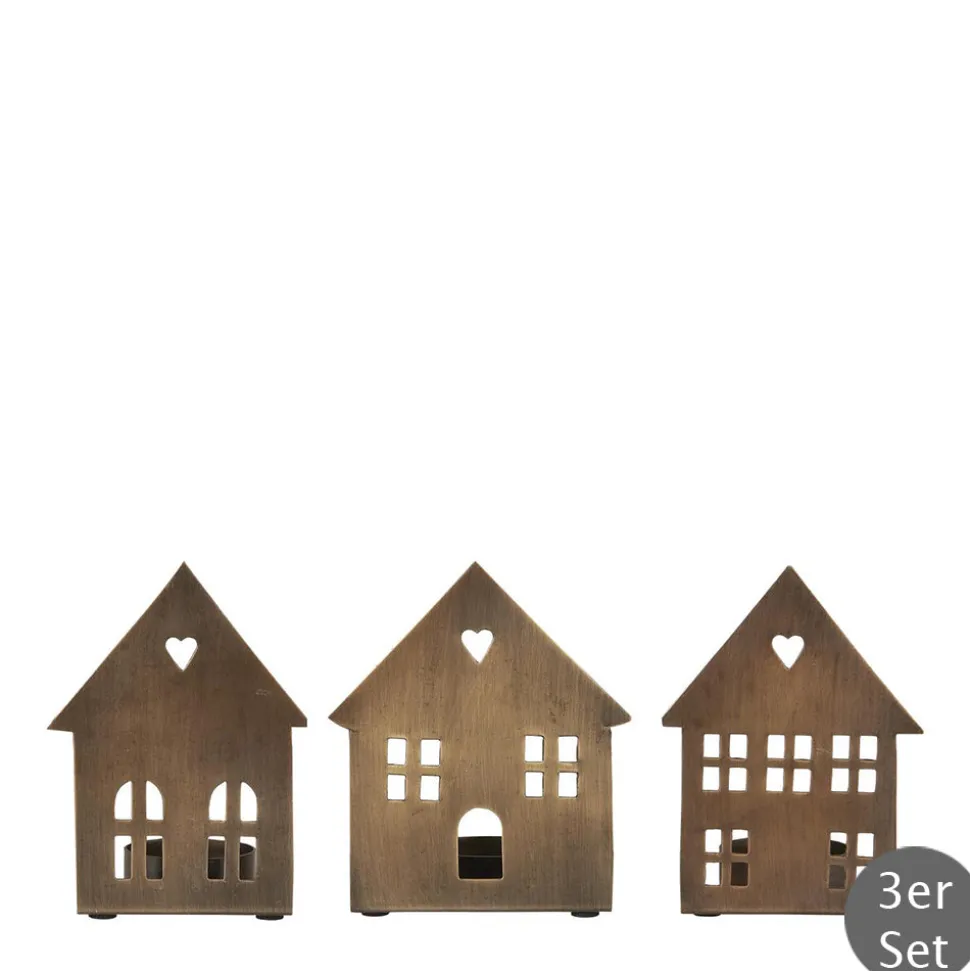 Ib Laursen Teelichthalter Häuser 3er-Set messingfarben