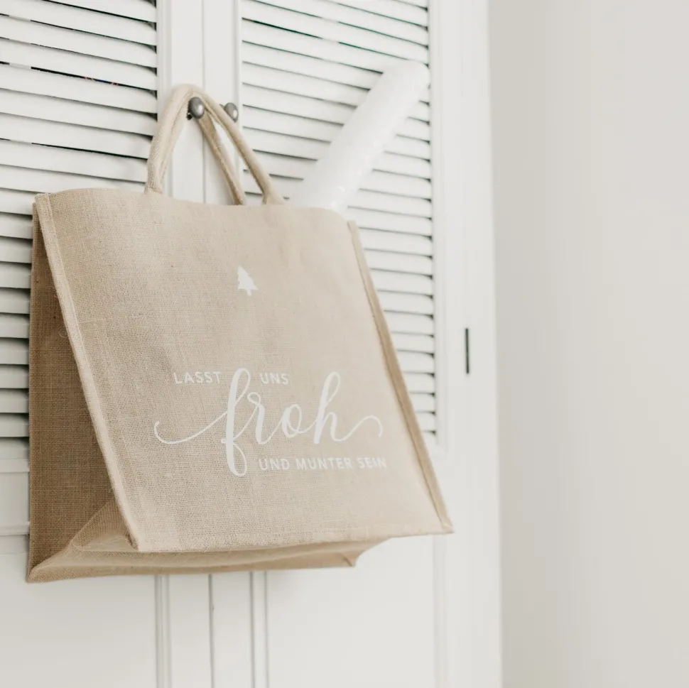 Jute-Shopper Lasst uns froh und munter sein naturfarben