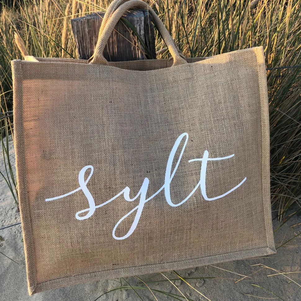 Unseren neuen Jute Shopper „Sylt“ erhältst Du exklusiv nur bei uns! Egal ob für den Marktbesuch in Westerland, das gemütliche Bummeln durch Keitum oder als Strandtasche für einen Ausflug an Deinen Lieblingsstrand, dank seiner Größe ist er ein super Begleiter für den Sommer auf Sylt. Wieder zurück Zuhause erinnert er Dich jeden Tag an Deine schönsten Syltmomente.