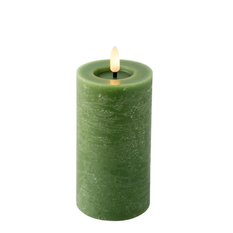 Zur Adventszeit lieben viele Menschen es, ihre Räume mit zahlreichen Kerzen zu schmücken. Das sanfte Flackern der Kerzen bringt erst die richtige festliche Stimmung in Dein Zuhause und macht die Weihnachtszeit so besonders und gemütlich. Doch leider birgt echtes Kerzenlicht auch immer eine gewisse Gefahr: Offenes Feuer kann schnell zum Risiko werden, besonders wenn Kerzen in der Nähe von trockenen Adventsgestecken, Vorhängen oder anderen leicht entflammbaren Dekorationen stehen. Das sorgt bei vielen für Unsicherheit und erfordert ständige Aufmerksamkeit.Doch keine Sorge – mit dieser grünen Stumpenkerze kannst Du die stimmungsvolle Atmosphäre von flackerndem Kerzenlicht ganz ohne Brandgefahr genießen. Die Kerze leuchtet batteriebetrieben und flackert täuschend echt, genau wie eine echte Kerze. So kannst Du beruhigt Deine Weihnachtsdekoration gestalten, ohne Angst vor offenem Feuer zu haben. Die Kerze ist 15 cm hoch und hat einen Durchmesser von 7 cm – eine perfekte Größe, um in unterschiedlichen Kerzenhaltern oder Adventsgestecken Platz zu finden.Besonders praktisch ist der integrierte 6-Stunden-Timer, der das manuelle Ein- und Ausschalten der Kerze überflüssig macht. Einfach die Kerze aufstellen, den Timer einstellen, und sie schaltet sich automatisch jeden Tag für sechs Stunden ein und danach wieder aus. So kannst Du Dich ganz entspannt auf die festliche Atmosphäre freuen. Wir wünschen Dir viel Spaß beim Dekorieren Deiner weihnachtlichen Lichterwelt und eine wundervolle Adventszeit!