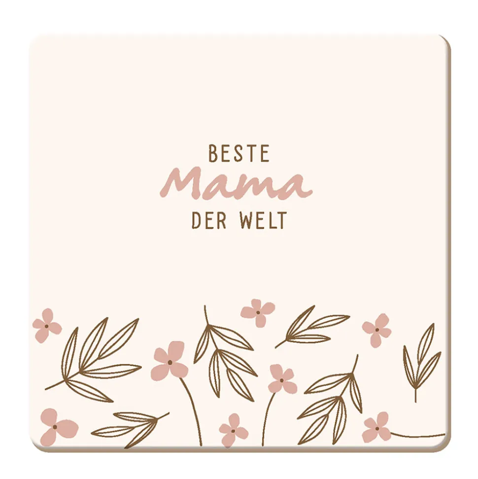 Lade Deine Mama zur Dir nach Hause ein und überrasche sie nicht nur mit ihrem Lieblingsgetränk, sondern gleich mit diesem tollen Korkuntersetzer Beste Mama der Welt. Der Untersetzer ist mit schönen Blumen und Zweigen verziert, was das schöne Ambiente am Tisch unterstreichen wird. Natürlich eignet sich der trendige Korkuntersetzer auch prima als Geschenk für Deine Mutter!