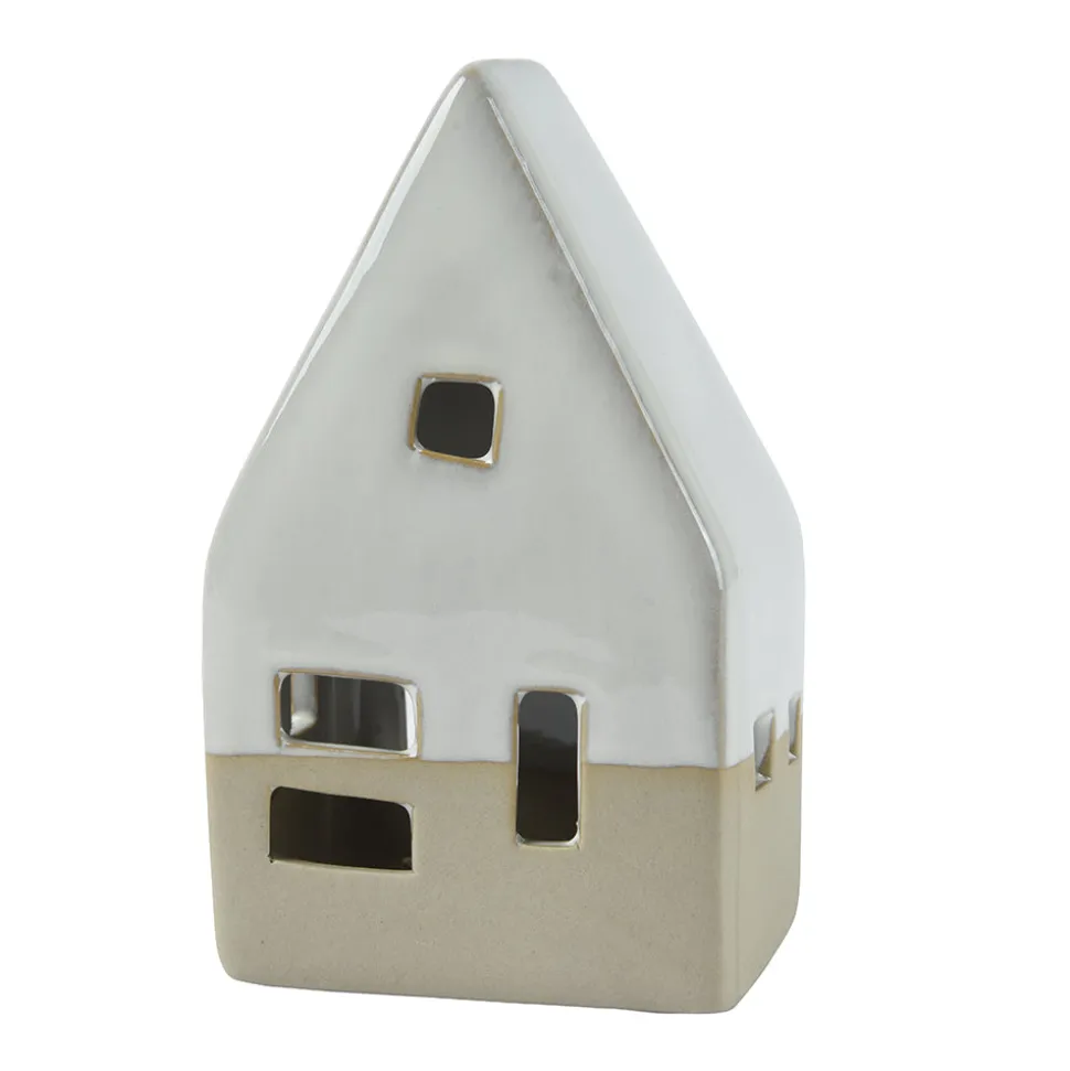 Sorge mit dem Lichthaus Spitzdach weiß-taupe in der Weihnachtszeit für einen leuchtenden Blickfang im modernen Stil. Aus Porzellan gefertigt sorgt es besonders auf dem Tisch, der Kommode oder dem Sideboard für einen trendigen Hingucker. Lasse Dich inspirieren und entdecke weitere moderne Dekorationen für Dein Zuhause hier in unserem Shop.