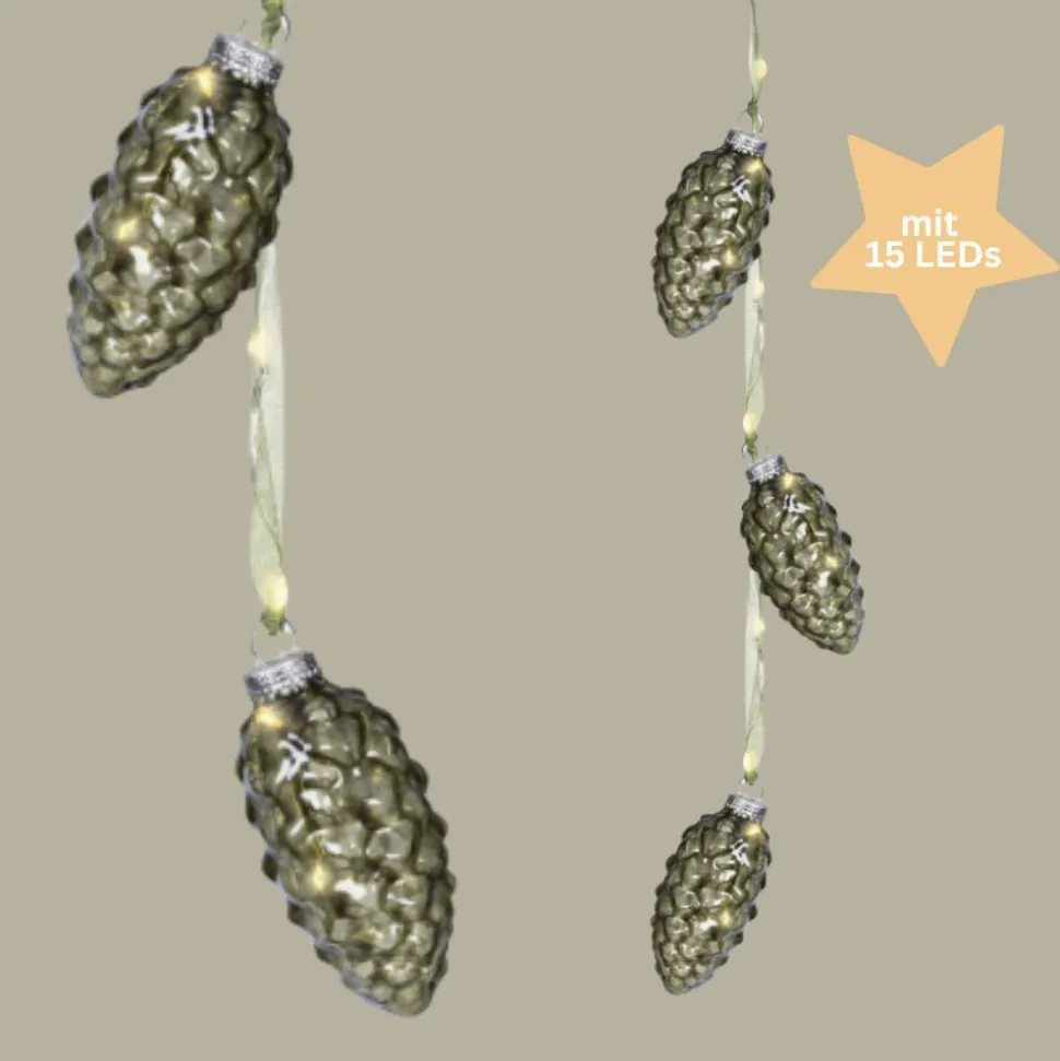Verwandle Dein Zuhause in eine festliche Winterlandschaft mit diesem bezaubernden Micro LED-Zapfen-Bündel in Grün! An einem Strang sind 15 kleine, warm leuchtende LEDs und grüne Zapfen arrangiert, die mit ihrem sanften Funkeln sofort für Weihnachtsstimmung sorgen. Ob am Fenster, an der Wand oder kunstvoll in Deinem Adventsgesteck drapiert – diese Lichterkette bringt einen natürlichen und eleganten Akzent in Deine Dekoration.Die zarten grünen Zapfen verleihen Deinem Raum eine frische, naturnahe Note und schaffen mit dem warmen LED-Licht eine gemütliche, einladende Atmosphäre. Das flackernde Licht erinnert an glitzernde Eiskristalle oder den sanften Schein von Kerzen und lässt die Winterabende besonders behaglich wirken.Dank der batteriebetriebenen Ausstattung kannst Du das Bündel flexibel überall platzieren – ganz ohne störende Kabel oder Steckdosen. So hast Du volle Freiheit, Dein Zuhause genau nach Deinem Geschmack zu schmücken. Der praktische 6-Stunden-Timer übernimmt das tägliche An- und Ausschalten für Dich, damit Du Dich entspannt zurücklehnen und die festliche Stimmung genießen kannst.Gönn Dir dieses grüne Micro LED-Zapfen-Bündel und bringe mit seinem warmen Licht ein Stück Natur und Weihnachtszauber in Dein Zuhause. Perfekt, um Deine Adventszeit gemütlich, stilvoll und voller Lichterglanz zu feiern!