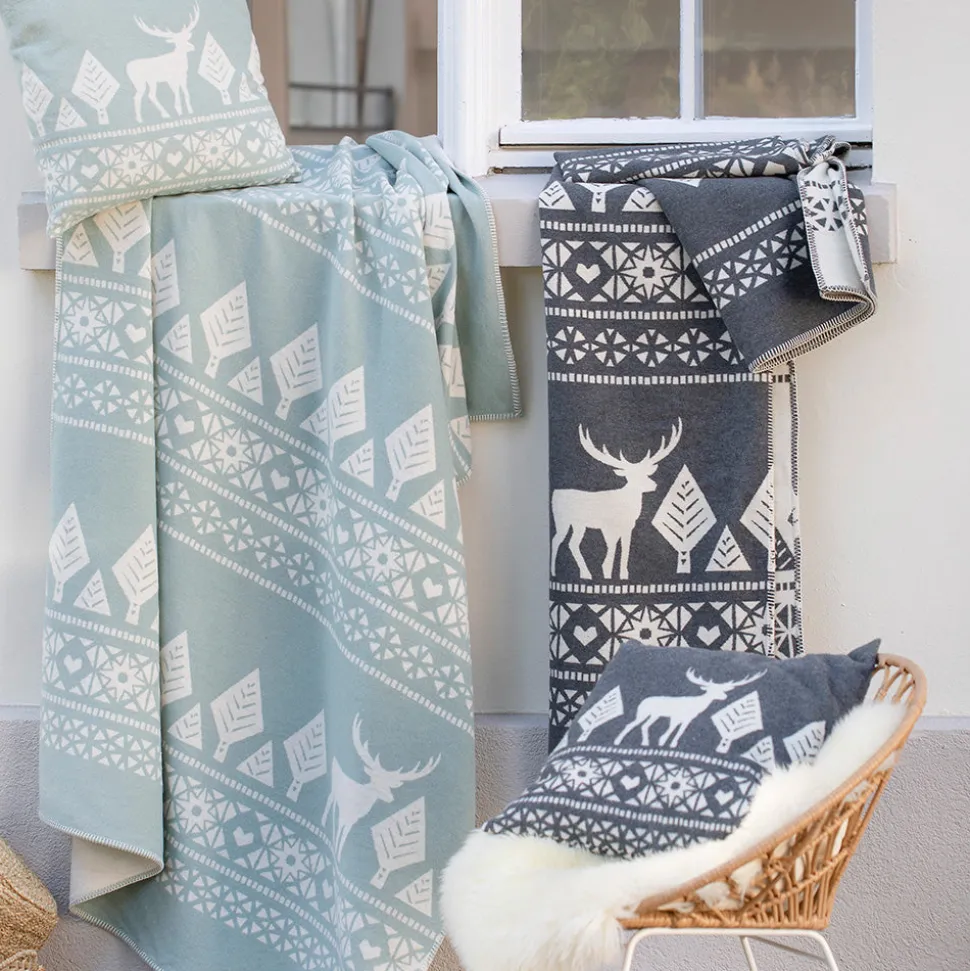 Nordic Baumwolldecke Hirsch Finn dunkelgrau