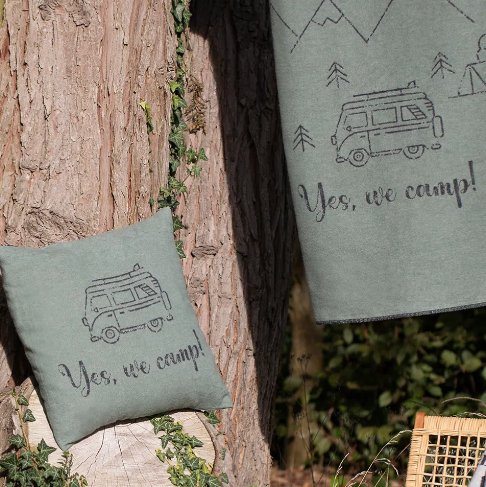 Nordic Kissenhülle Yes we camp dunkelgrün 50 x 50 cm