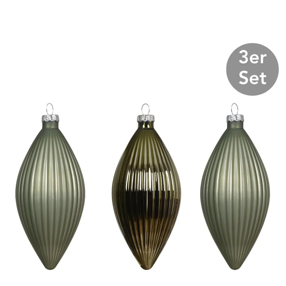 Ornamente Glas Olivenform 3er-Set grün