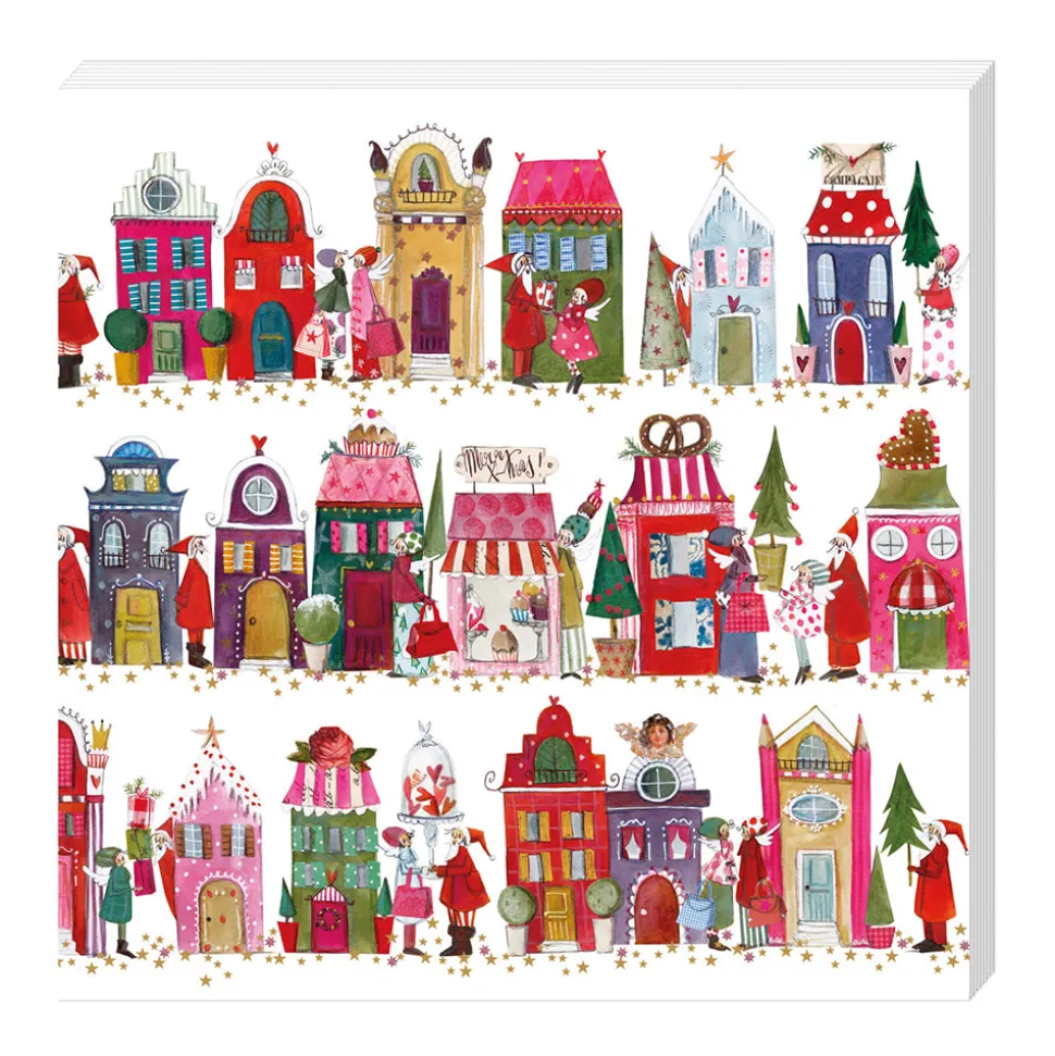 Na, in welches der vielen Häuser trägt der Weihnachtsmann wohl sein nächstes Geschenk? Diese Papierservietten ergänzen Deine festlich gedeckte Tafel perfekt. Wir wünschen Dir ein nostalgisches Weihnachtsfest im Kreise Deiner Liebsten.