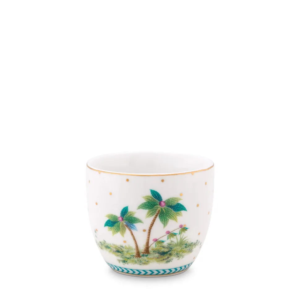 Ein Frühstücksei gehört für viele zu einem perfekten Frühstück. Mit dem Eierbecher Julie Dots von Pip Studio kannst du ein Ei so schick präsentieren, wie noch nie zuvor. Das tropische Blumenmuster wird von einem goldfarbenen Rand gekrönt. Was uns besonders gefällt: Die unzähligen goldfarbenen Tupfer auf dem weißen Porzellan. Du kannst den Becher übrigens auch noch ganz anders verwenden, z.B. als kleine Vase. Einfach mit etwas Steckschaum füllen und schon kannst du ein kleines Blumenbouquet zaubern. Entdecke noch mehr fantasievolle Produkte aus den Kollektionen von Pip Studio bei uns im Onlineshop!