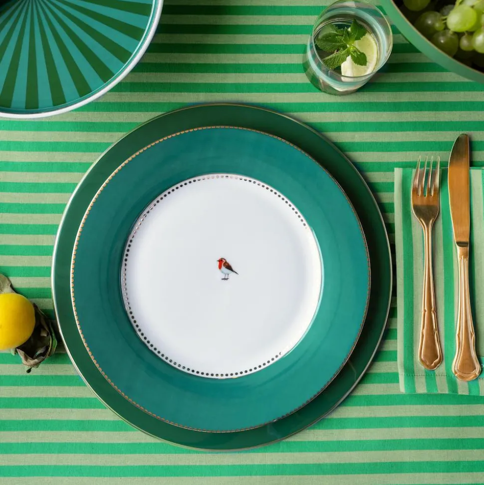 Der leuchtend grüne Rand des Esstellers Love Birds von Pip Studio fällt auf Deiner gedeckten Tafel sofort ins Auge. In der Mitte des 26,5 cm großen Tellers findest Du, nachdem der Braten aufgegessen ist, ein kleines Rotkehlchen. Natürlich dürfen auch die für Pip typischen goldfarbenen Details nicht fehlen. Verliebe auch Du Dich in die neue Love Birds Kollektion von Pip Studio.