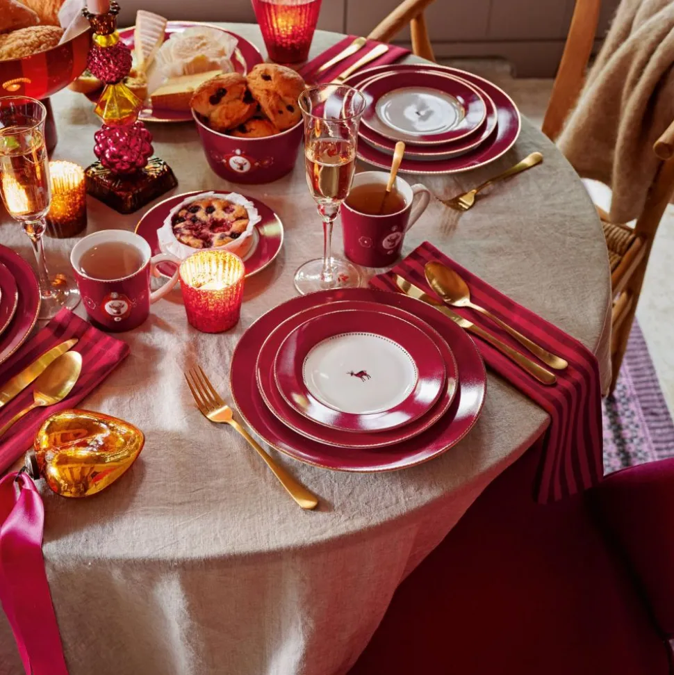 Mit einem Durchmesser von 17 cm ist dieser stilvolle Teller von Pip Studio ideal für kleine Köstlichkeiten wie Vorspeisen, Kuchen oder herzhafte Snacks. Ob beim winterlichen Frühstück, der Kaffeepause am Nachmittag oder beim festlichen Abendessen – er bringt Wärme und Stil auf deinen gedeckten Tisch.Das weiße Zentrum des Tellers wird von einem fein gezeichneten Hirsch geschmückt – ein Symbol für Ruhe, Naturverbundenheit und die besondere Stimmung der kalten Jahreszeit. Der dunkelrote Rand bildet dazu einen harmonischen Kontrast und verleiht dem Teller eine edle, weihnachtliche Ausstrahlung. Goldfarbene Details runden das Design perfekt ab und sorgen für einen Hauch von Luxus.Dieser Teller ist viel zu schade, um nur in der Adventszeit aufgedeckt zu werden. Kombiniere ihn mit weiteren Produkten der Love Birds Kollektion und erschaffe dir das ganze Jahr ein stimmungsvolles Gesamtbild für deine Festtafel.Ob für dich selbst oder als stilvolles Geschenk – dieser Teller ist ein echtes Highlight in jeder Geschirrsammlung.Lass dich inspirieren und bring mit Pip Studio festliche Gemütlichkeit auf deinen Tisch.
