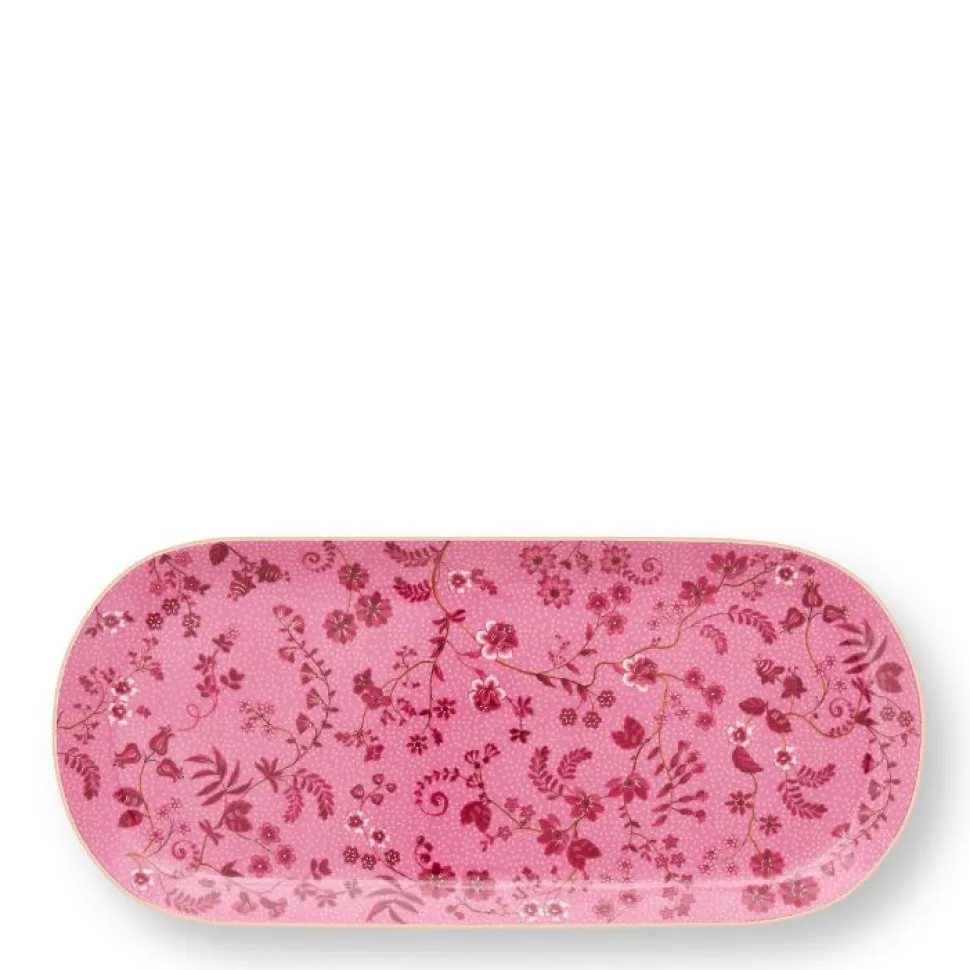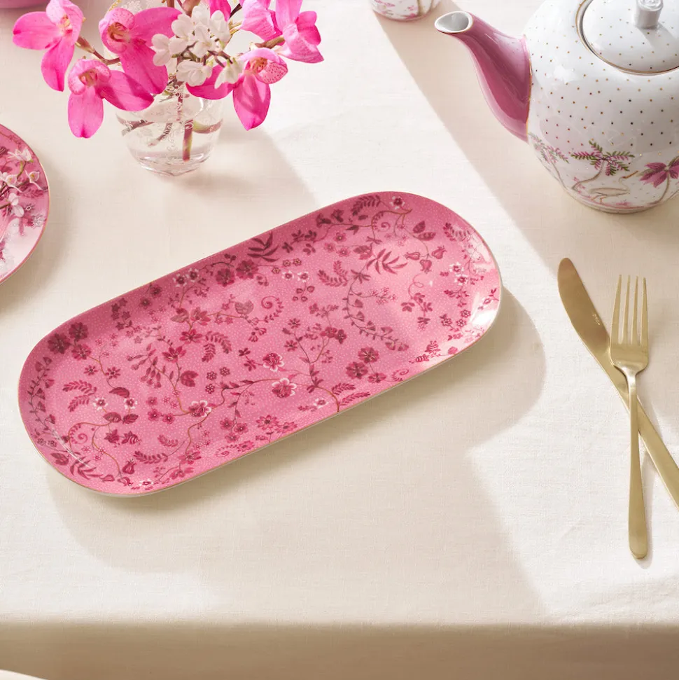Der ovale Kuchenteller Jolie ist ein wundervoller Farbtupfer auf Deinem Tisch. Mit seinen zierlichen rosafarbenen Blüten wird er Dich sofort begeistern. Goldfarbene Akzente lassen die Platte sehr edel wirken. Überrasche Deine Gäste mit köstlichem Kuchen und dem wundervollen Geschirr von Pip Studio.